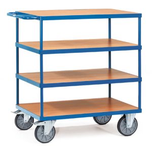 fetra® Schwerer Tischwagen mit 4 Etagen und Holzplattform, 500 – 600kg Tragkraft und bis zu 1200 x 800mm Ladefläche