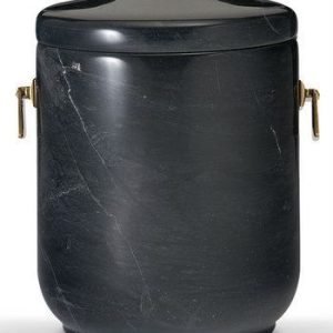Runde Marmorurne in Schwarz zylindrisch, flacher Deckel