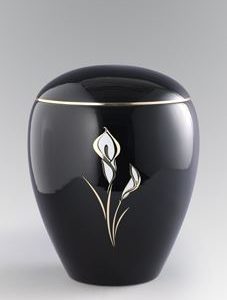 Keramikurne-tiefschwarz glänzend Motiv “Calla”