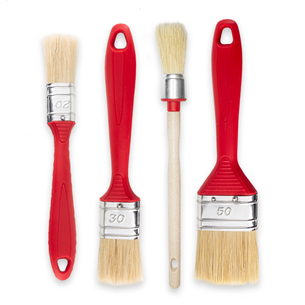 4er Set Malerpinsel mit rotem Kunststoff-Griff – 20 | 30 | 50 mm