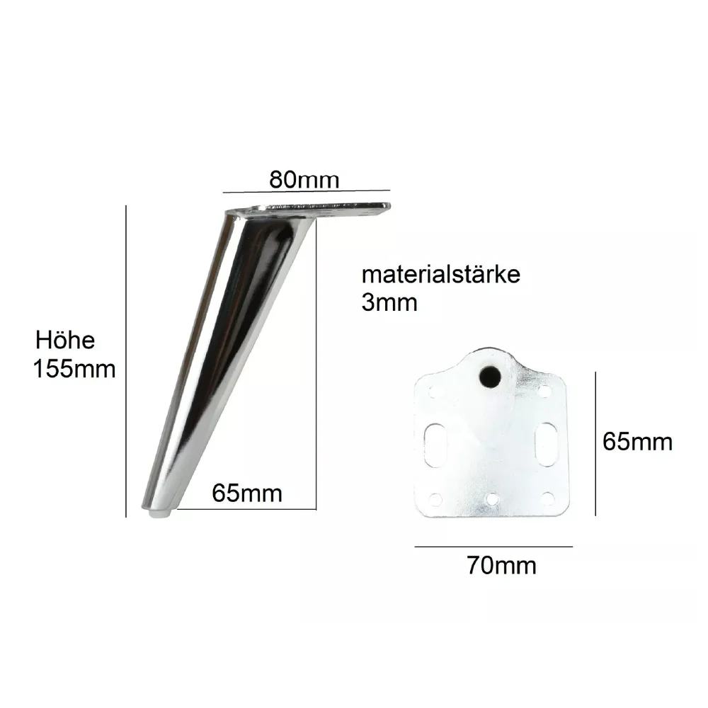 4× Möbelfüße aus Stahl (155 mm) – rutschfest & bodenschonend