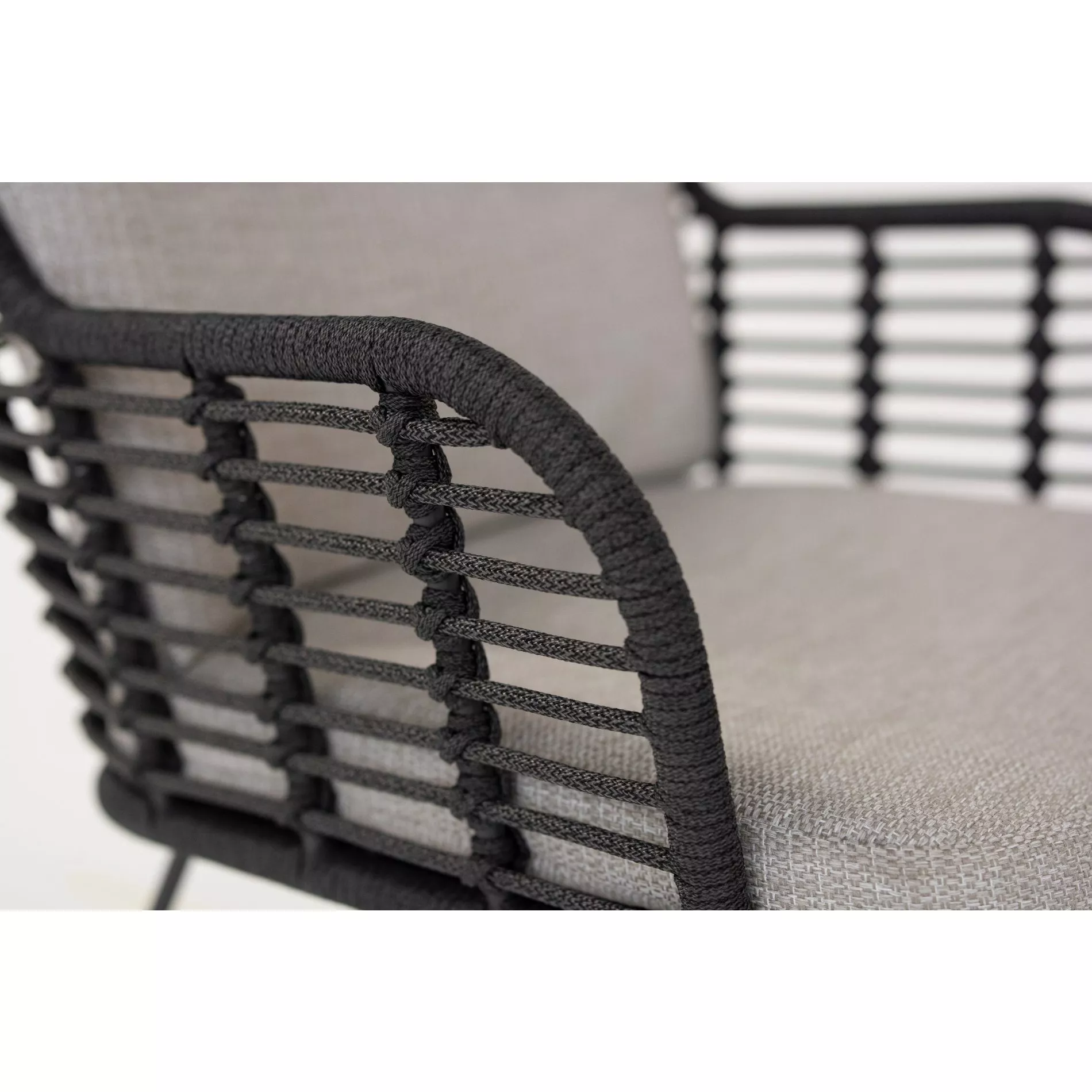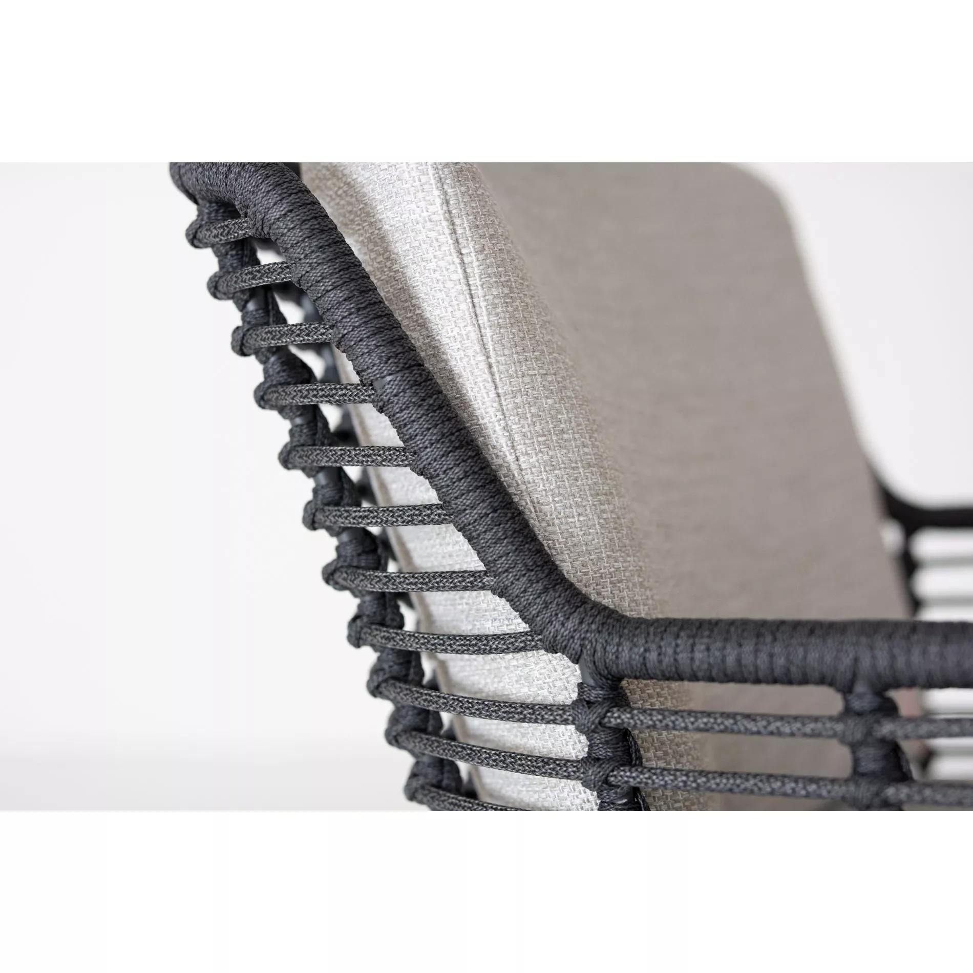 Der Diningsessel “Fabrice” besitzt ein schlankes Kufengestell, Sitz und Rücken des Diningsessels sind in einem luftigen Muster mit Rope (Polypropylen) bespannt. Das seilartige Material ist formbeständig, reißfest und unempfindlich gegenüber Witterungseinflüssen. Bei den Bezügen der Kissen setzt 4Seasons Outdoor auf Olefin, eine synthetische Faser mit vielen, für den Außenbereich idealen Eigenschaften. So ist das Gewebe schmutzabweisend, atmungsaktiv, schnelltrocknend und sehr langlebig. Gleichzeitig hat es eine ähnliche Haptik wie Baumwollstoffe und sorgt so für viel Gemütlichkeit.