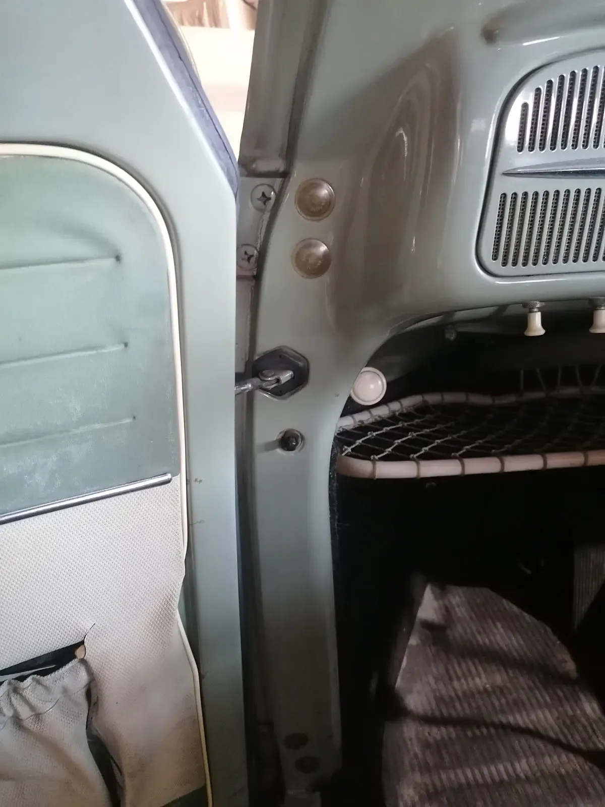 Die hier erwähnte Abdeckung ist für Blechlöcher von 20 mm gedacht und ggf. universell einsetzbar. Diese Kappen waren ursprünglich dazu gedacht, die Türscharnierbolzen des Volkswagen Käfers abzudecken. Bis Ende 1985 waren sie halbtransparent und verfärbten sich danach schwarz. Wird offiziell nur bei den letzten in Mexiko produzierten VW Käfern verwendet. Aber die Kappen wurden nicht nur für die Türscharniere, sondern auch für die Scharnierbolzen des hinteren Seitenfensters und die Befestigungslöcher des Ausstellfensterrahmens verwendet, um die Scharnierbolzen des hinteren Seitenfensters und die Befestigungslöcher des Ausstellfensterrahmens außer Sicht zu bringen die Cabrio-Version. Beim Karmann Ghia dienten sie zum Verschließen diverser Inspektionslöcher.