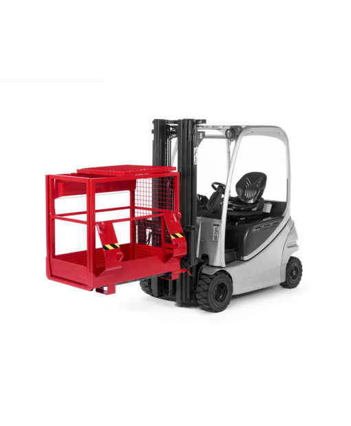 Durch die abnehmbare Rückenlehne stellen auch engere Räume, wie zum Beispiel beim Baumschnitt, kein Problem dar. Die klappbare Werkzeugablage sorgt dafür, dass Sie jederzeit alle Werkzeuge griffbereit haben. Das Besondere an diesem Arbeitskorb ist,dass er sowohl von einer Euroaufnahme, wie auch von einem Gabelstapler aufgenommen werden kann und Sie somit flexibel in der Auswahl Ihres Arbeitsgeräts bleiben. Zur sicheren Befestigung am Gabelstapler sind Sicherungslaschen mit zugehörigen Steckbolzen verbaut.