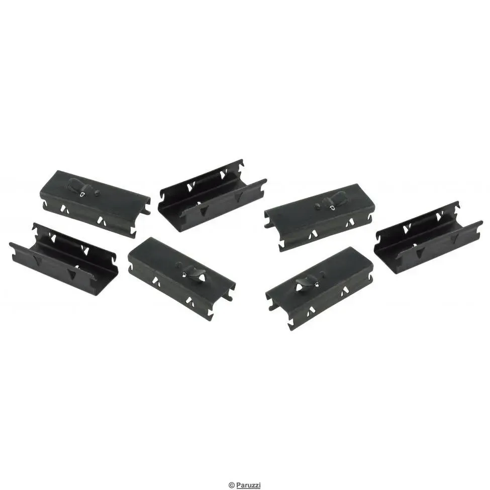 Falls die Schachtleiste oder der Chromrahmen der Tür erneuert wird, benötigen Sie diese Befestigungsclips der Fensterführungsdichtung. Damit wird der Scheibenfilz und auch der Chromrahmen gehalten. Diese Türclips werden in die dafür vorgesehenen Löcher eingeschoben und halten die Scheibenführung.
