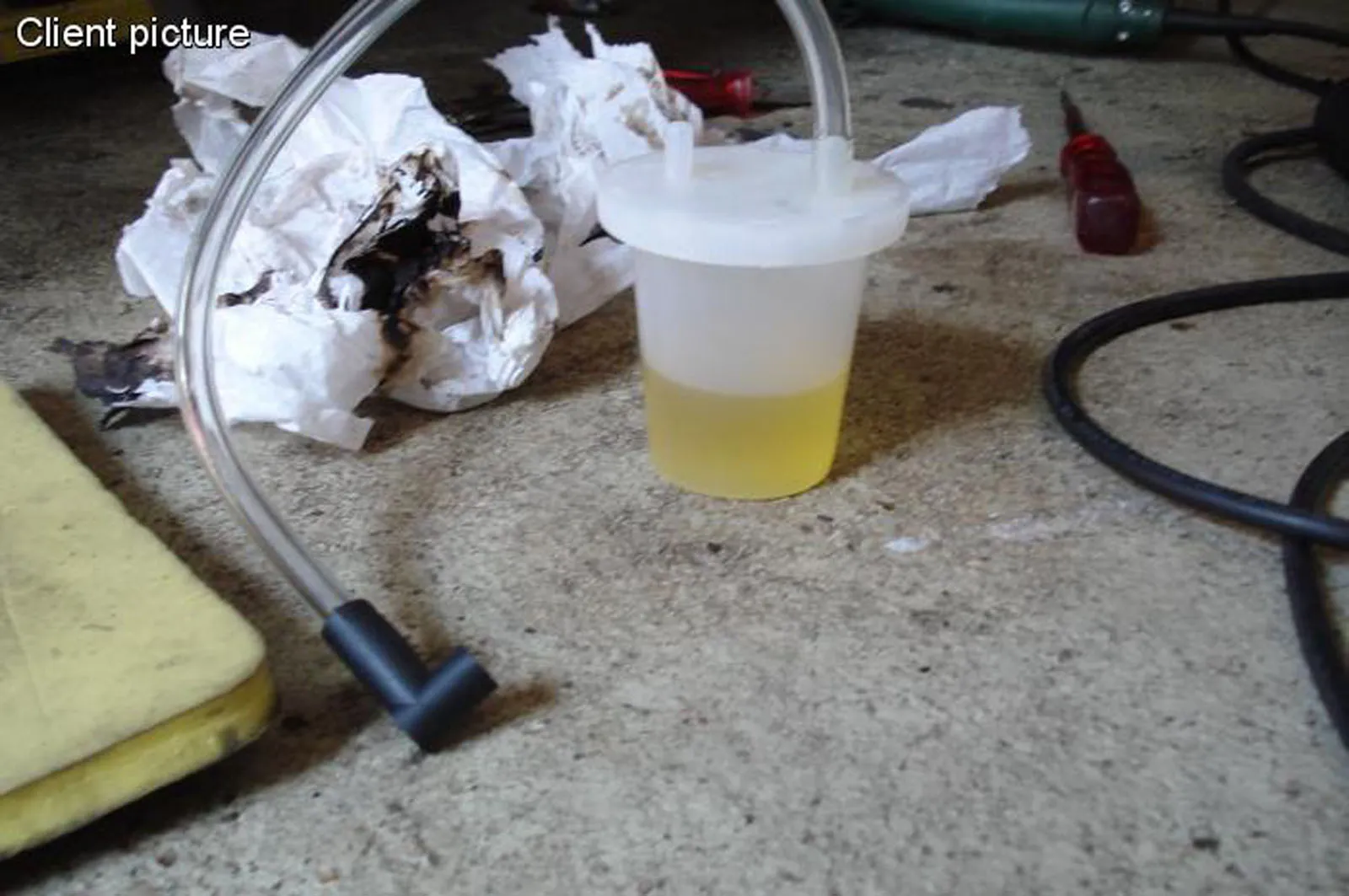 Sie schließen den Bremsentlüfter an das Entlüftungsventil an, öffnen das Ventil eine halbe Umdrehung und betätigen dann das Bremspedal, bis die gesamte Luft entfernt ist. Durch den transparenten Schlauch des Bremsenentlüfters sind die Luftblasen deutlich sichtbar.
