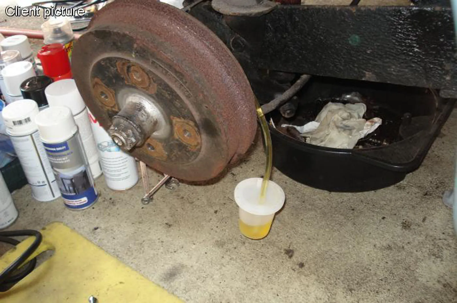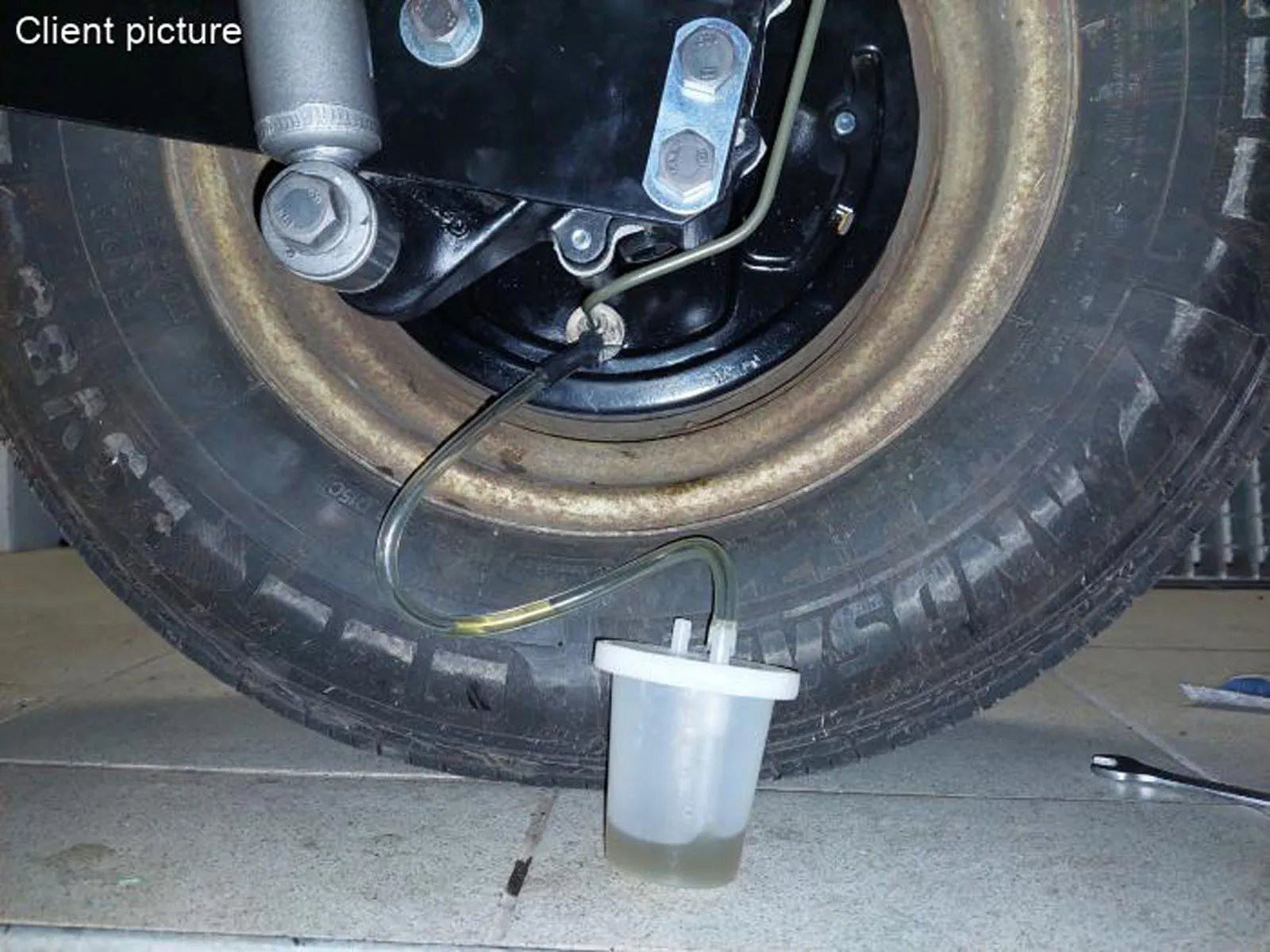 Bitte beachten Sie : Bevor Sie mit der Entlüftung beginnen, füllen Sie den Behälter des Entlüfters mit sauberer Bremsflüssigkeit, damit der Schlauch im Behälter keine Luft anziehen kann.