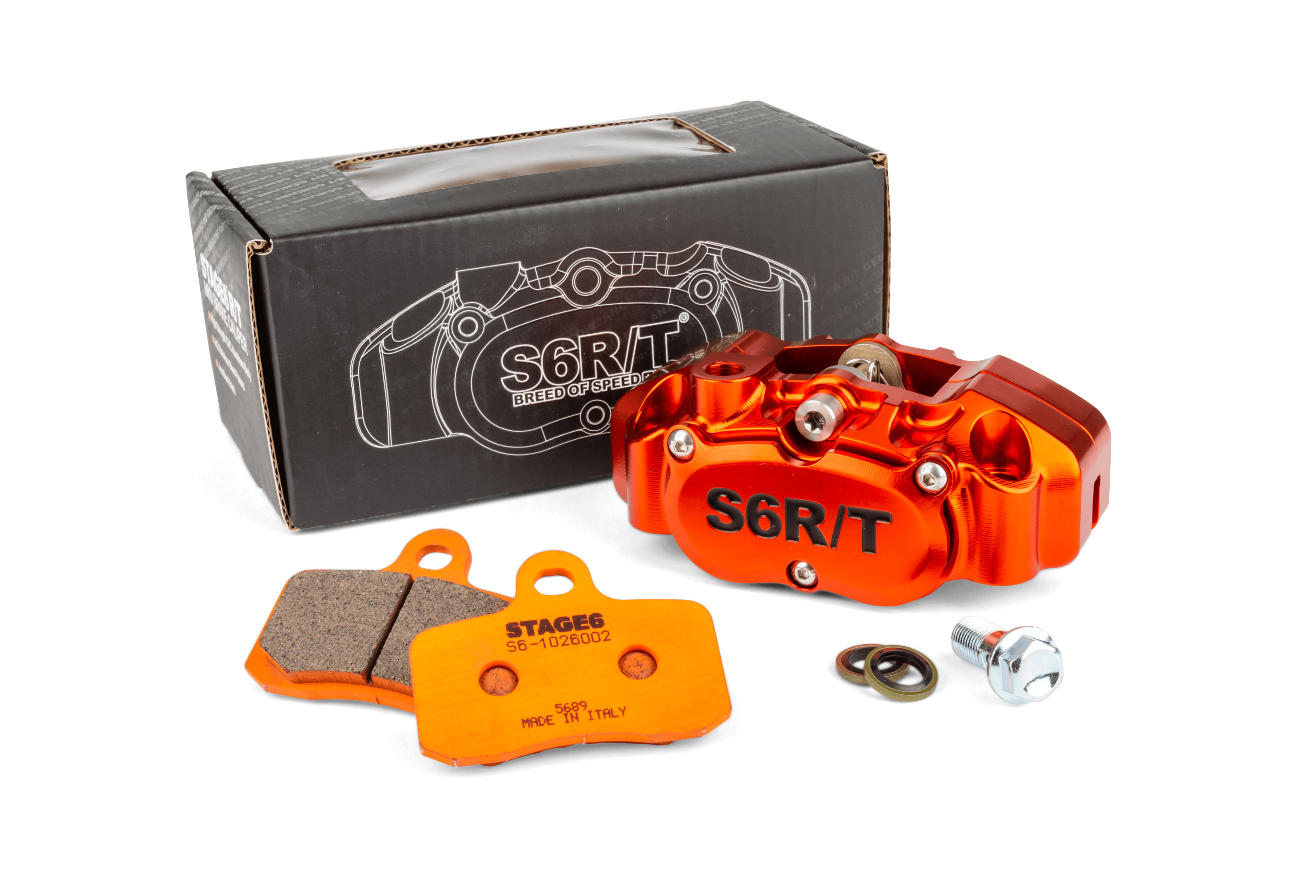 Die new and improved MK2 Version des Stage6 R/T Racing Bremssattels, Nachfolger der beliebten MK1 4-Kolben Bremszange. Engineering Made in Germany trifft maximale Bremsleistung. Erhältlich in Orange, Schwarz und Hard Anodized (besonders kratzfest).