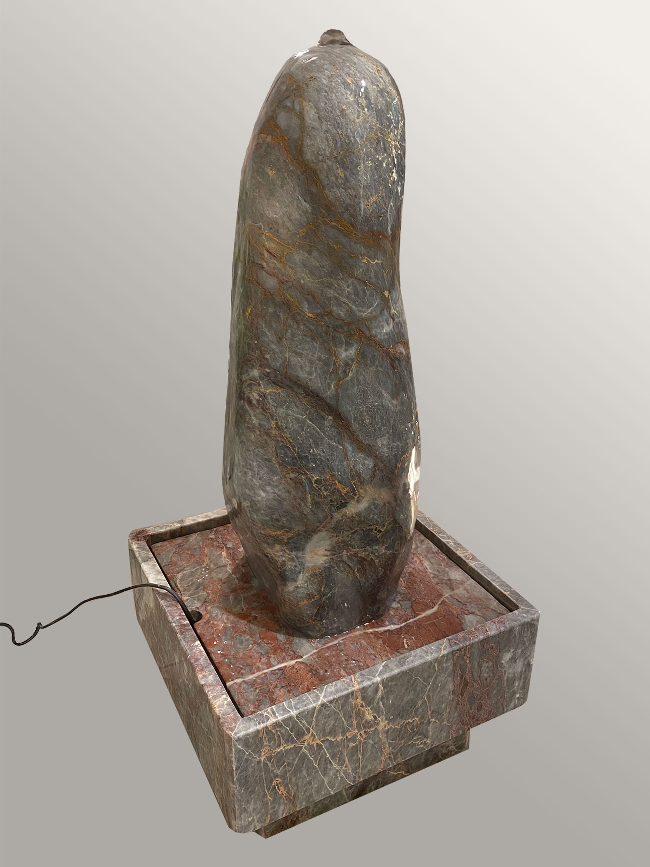 Die Oberfläche dieses wunderschönen Marmors wurde in sorgfältiger Handarbeit glatt geschliffen. Sanft fließt das Wassers über die geschwungenen Formen des Brunnensteins und schafft eine beruhigende Atmosphäre.