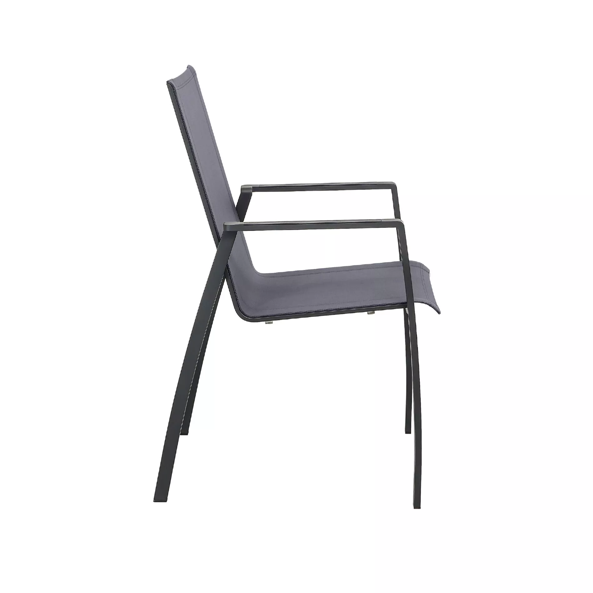 Die Gestelle der Gartenstühle “Mineo”, sowie des Kufentisches “Falerna” bestehen aus pulverbeschichtetem Edelstahl, einem äußerst korrosionsbeständigen Metall, das sich ideal für Gartenmöbel eignet. Auch hier überzeugt die DuPont® Pulverbeschichtung mit Ihrer seidenmatten Anthrazitfäbrung.