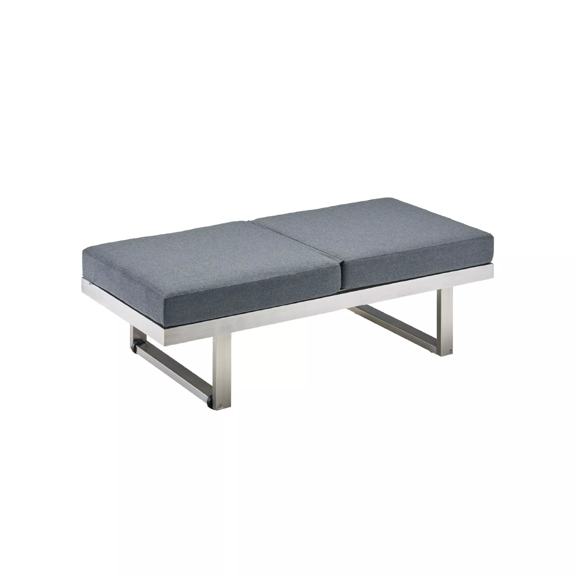 Eine Seite hat eine verstellbare Sitzfläche, die bei Bedarf als Kopfstütze dient. Diese Funktion können Sie am besten nutzen, wenn Sie den 2-Sitzer durch weitere Module ergänzen und z. B. eine Ecklounge stellen.