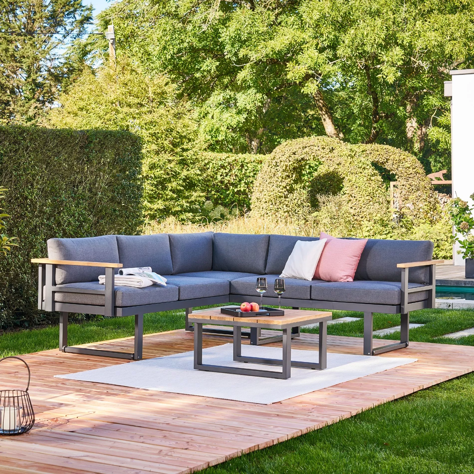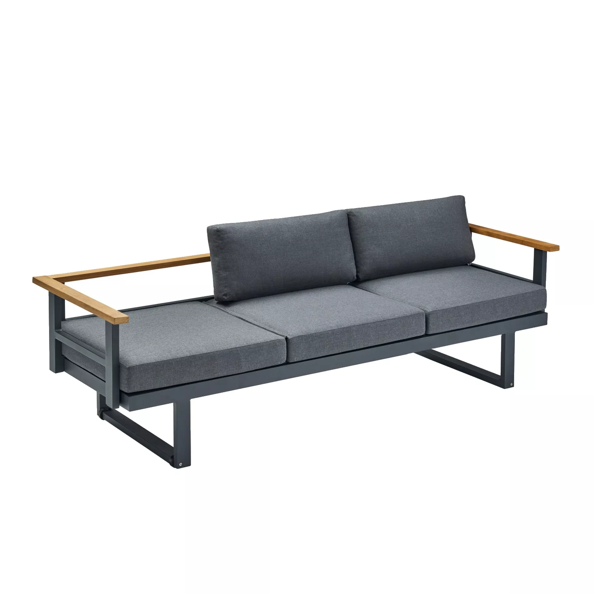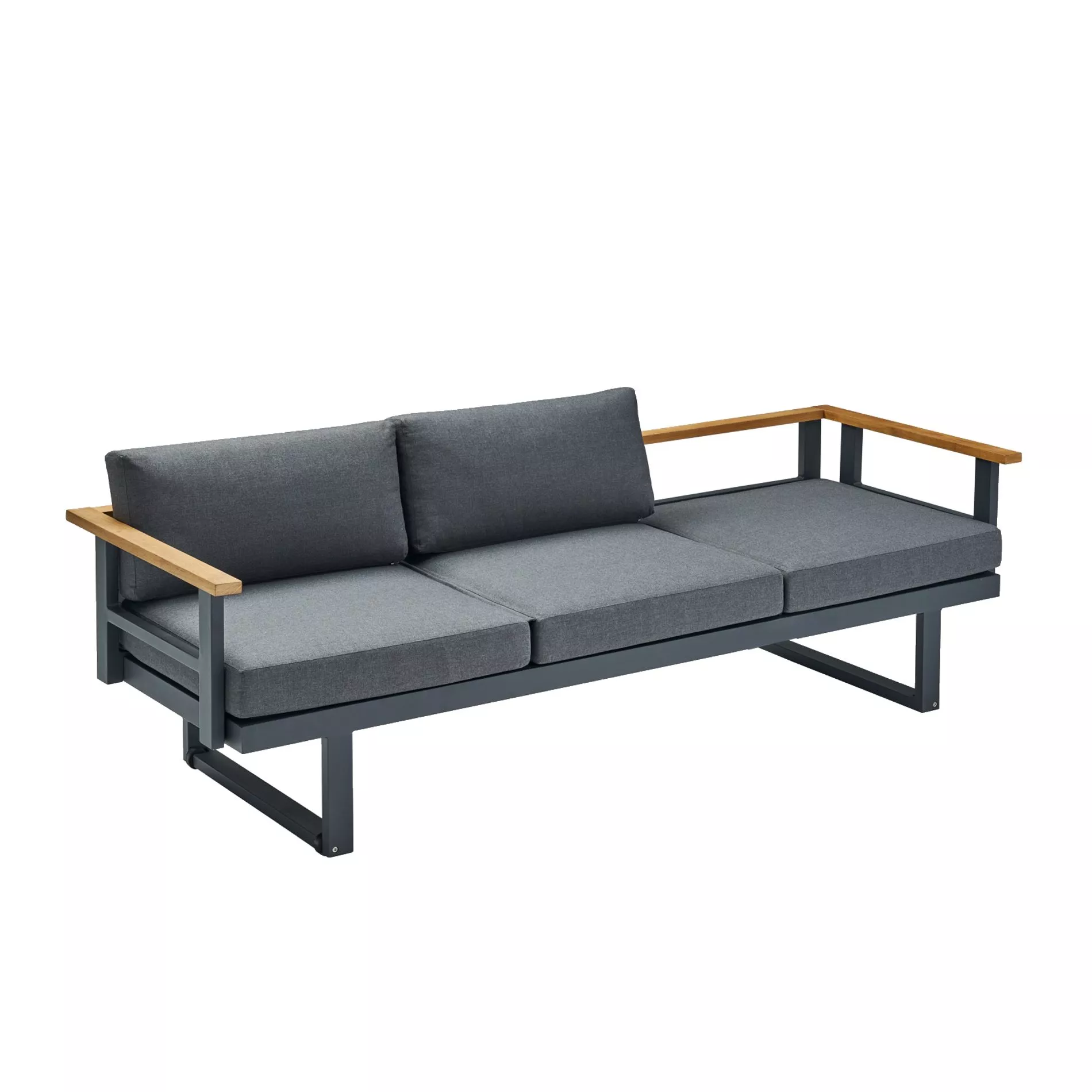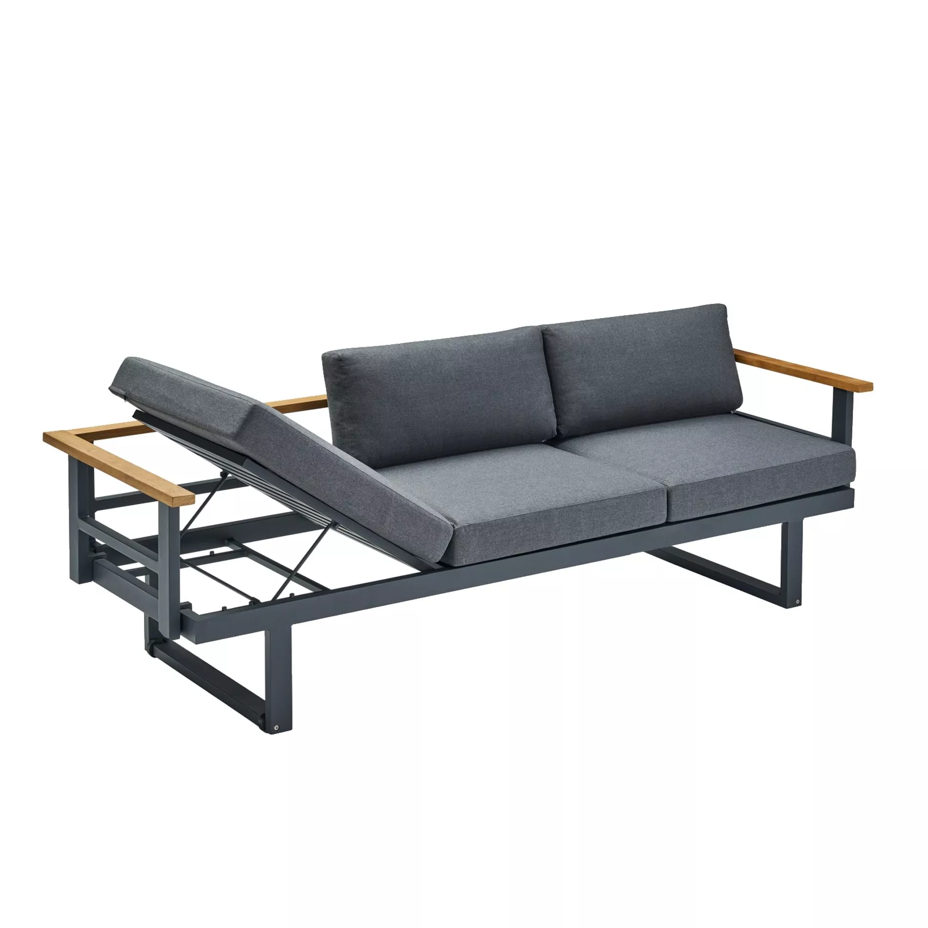 Das einladende Loungeset “Aragona” der Marke CASA DOMA besteht aus einem 3-Sitzer Loungesofa und einem 2-Sitzer Seitenteil, die in Kombination eine komfortable Ecklounge ergeben und vier Personen bequem Platz bieten. Der dazu passende Loungetisch “Aragona” nimmt mit seiner Tischplatte aus Teakholz eine schöne Verbindung zur umlaufenden Teakleiste der Sitzmöbel auf. Die stabilen, mattierten Gestelle aus anthrazitfarbenem Aluminium ergänzen den modernen Look. Die wetterfesten Polster aus Tuvatextil® laden zum Entspannen und Verweilen ein. Dank verstellbarer Seitenteile finden Sie auch im Liegen eine gemütliche Position.