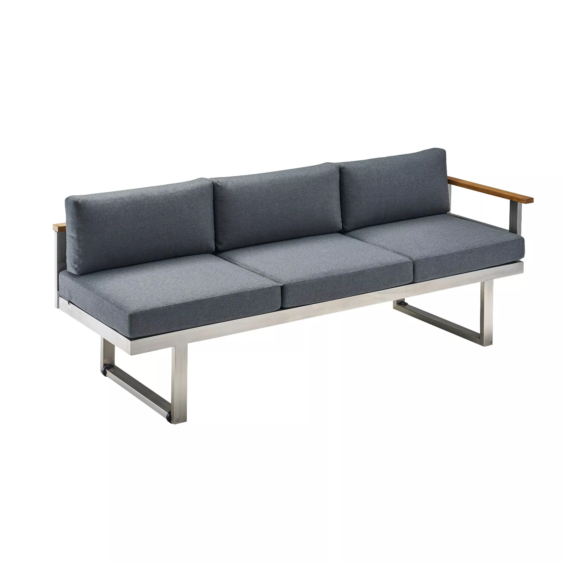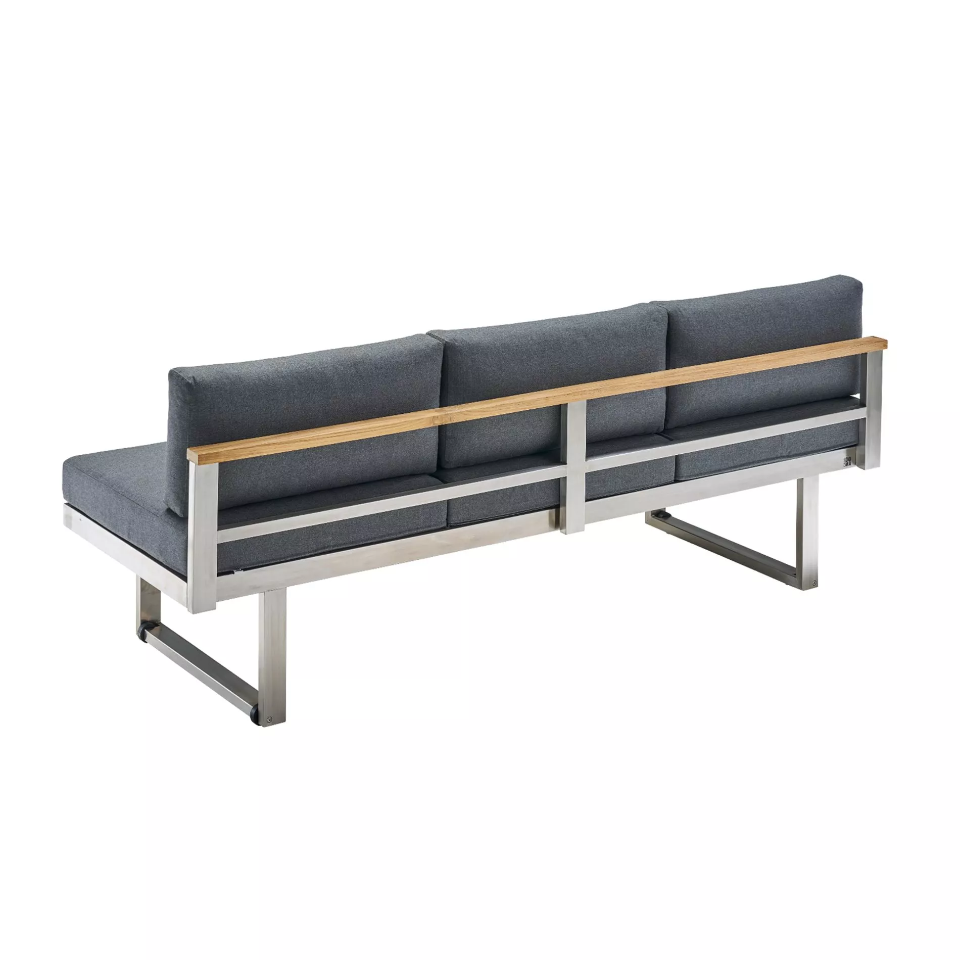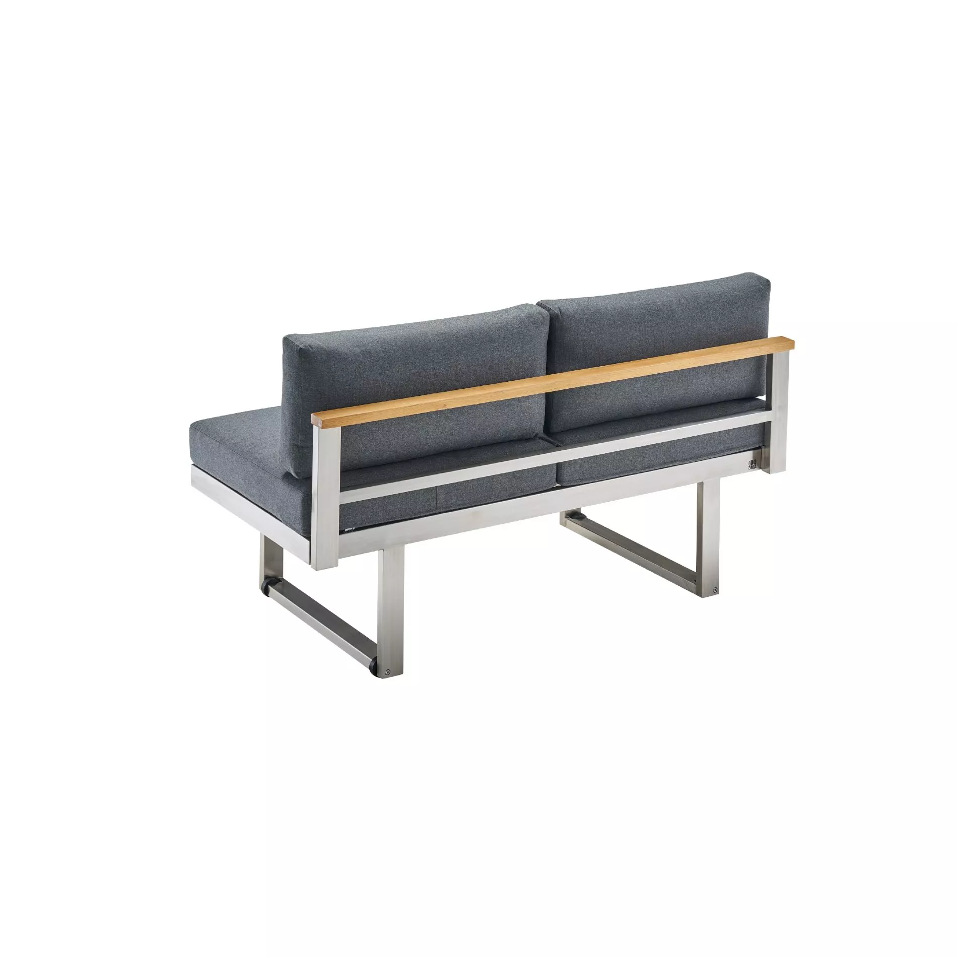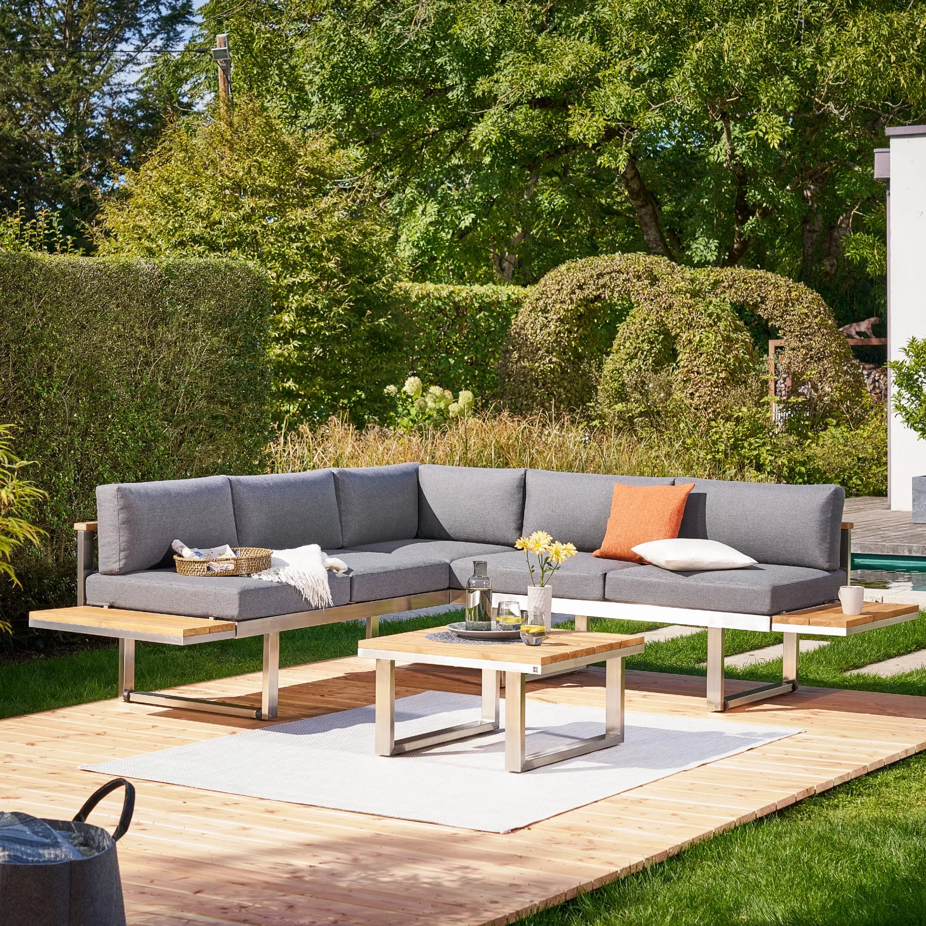 Das hochwertige Loungeset “Aragona” der Marke CASA DOMA besteht aus zwei Lounge-Elementen und einem Loungetisch, die in Kombination eine äußerst komfortable Ecklounge ergeben. Die Verwendung von Edelstahl und Teakholz verleiht dem Set nicht nur ein ansprechendes Design, sondern auch eine langlebige und wetterbeständige Qualität. Die beiden Seitenablagen bieten eine praktische Ablagefläche für persönliche Gegenstände, Getränke und Snacks. Der Loungetisch vervollständigt das Set und es ergibt sich eine stilvolle und harmonische Einheit. Das Loungeset “Aragona” ist somit ideal für entspannte Momente im Freien und lädt zum Verweilen und Genießen ein.