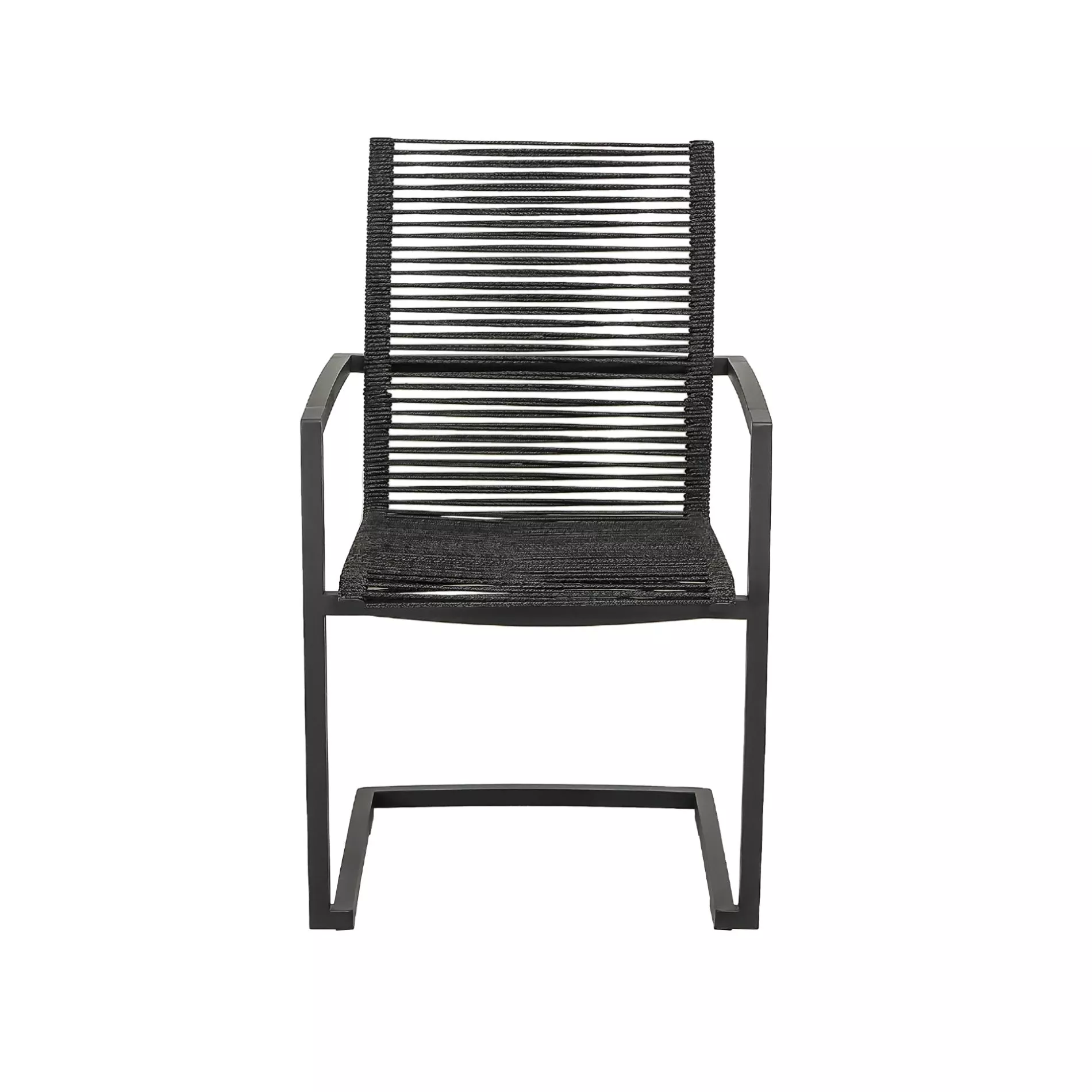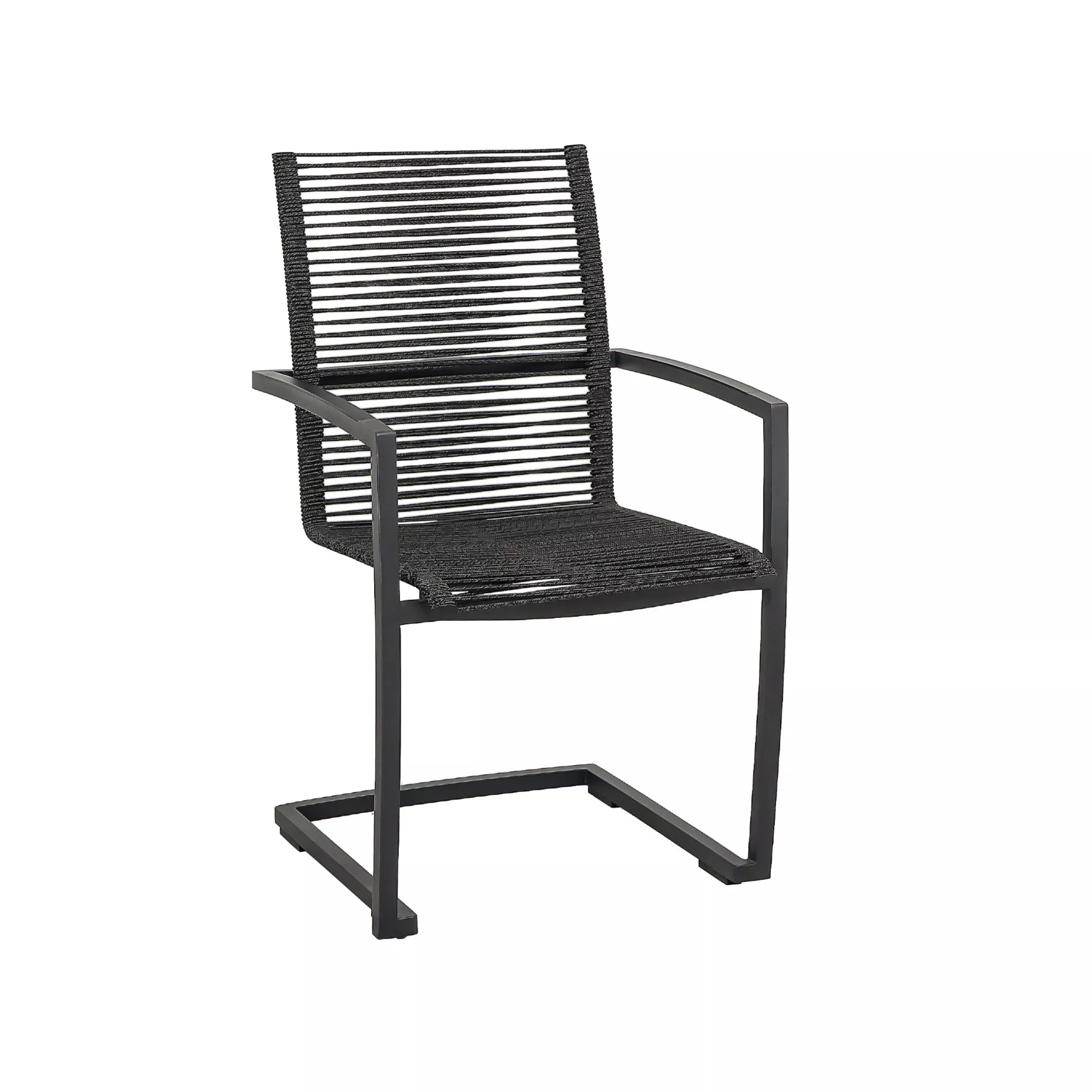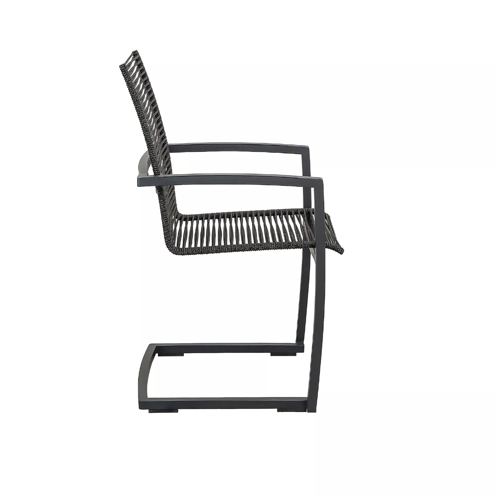 Die Sitz- und Rückenfläche der Freischwinger ist mit Rope bespannt, einem formstabilen Material aus Polypropylen mit stabilisierendem PE-Kern. Das Rope ist durchgefärbt und dadurch UV-beständig, darüber hinaus besitzt es wasserabweisende Eigenschaften. Es ist leicht und dennoch strapazierfähig. Die offene Bespannung ermöglicht ausgezeichnete Luftzirkulation, was für zusätzlichen Komfort an heißen Tagen sorgt. Die Armlehnen von “Mineo” werden wahlweise durch eine schwarze Aluminium-Einlage oder eine Einlage aus zertifiziertem Teakholz (SVLK) abgerundet.