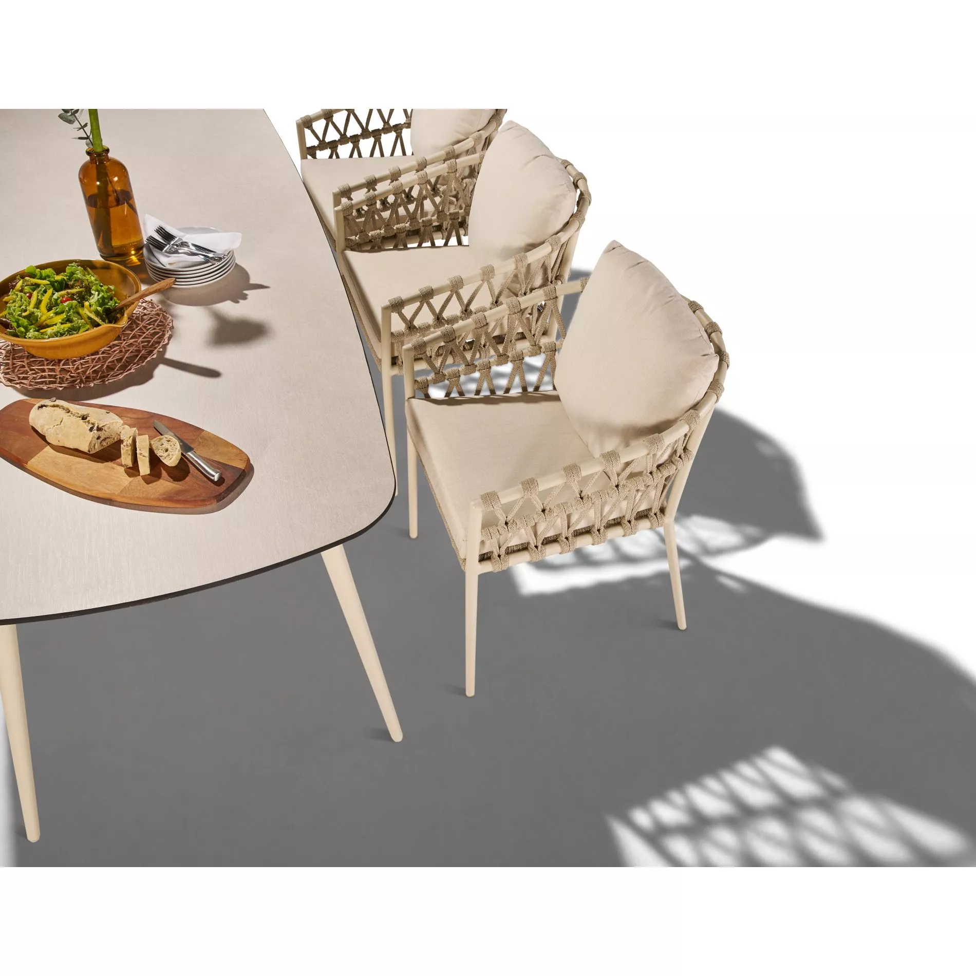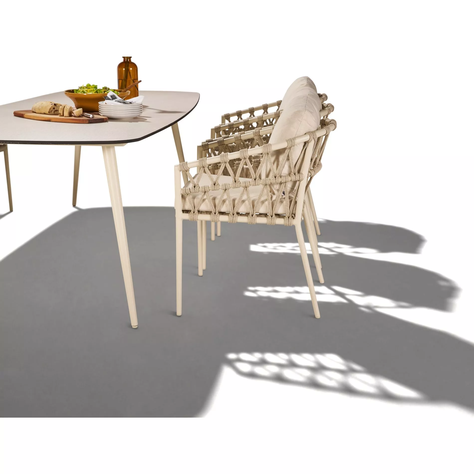 Der Gartentisch “Napola” lässt sich hervorragend mit Gartenstühlen aus Aluminium oder Edelstahl in Anthrazit bzw. Cream kombinieren, um ein harmonisches Gesamtbild zu schaffen. Entdecken Sie unsere Auswahl an passenden Gartenmöbeln und Zubehör, um Ihren Außenbereich stilvoll zu gestalten.