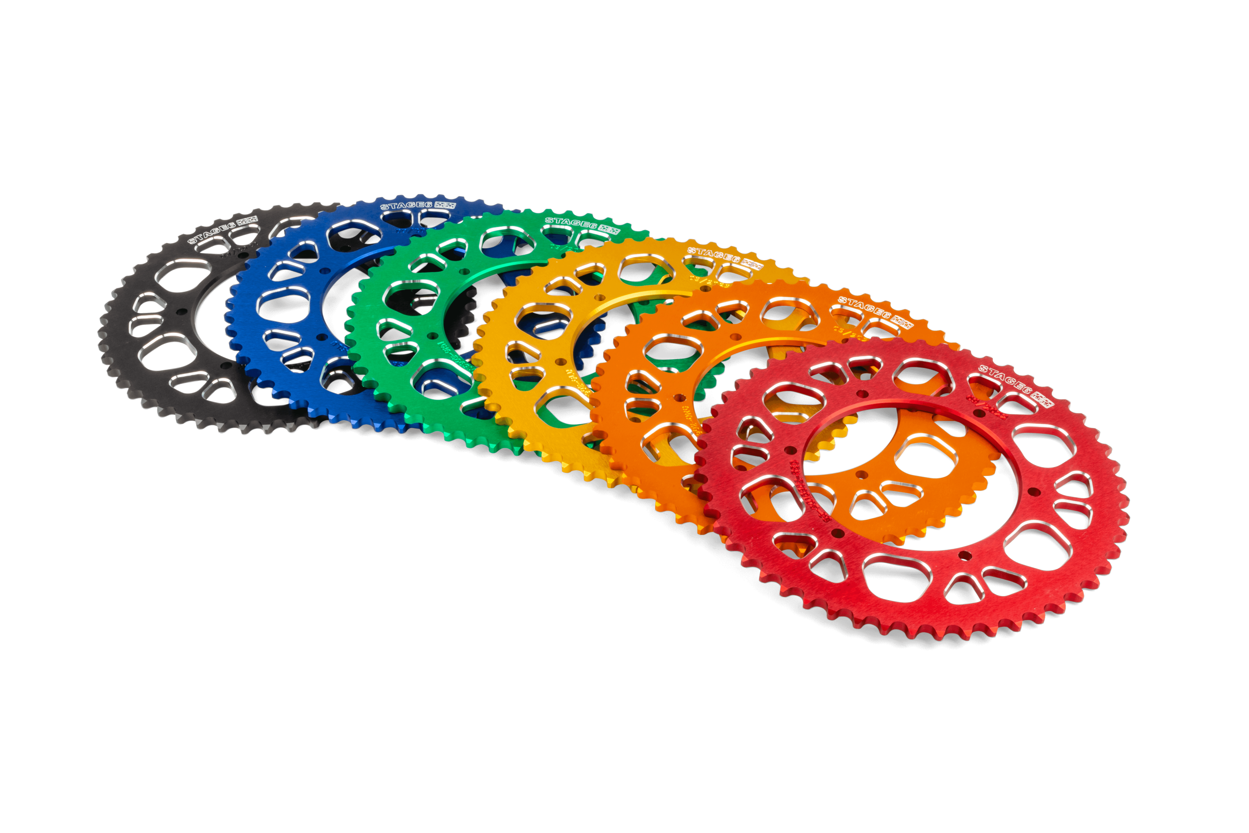 Stage6 à mis un point d’honneur à allier résistance, efficacité et esthétisme en choisissant de concevoir sa couronne en aluminium. Ceci permet de réduire considérablement le poids de votre train arrière tout en conservant une excellente résistance. Le gain de poids est d’environ 40 % par rapport à une couronne d’origine en acier.