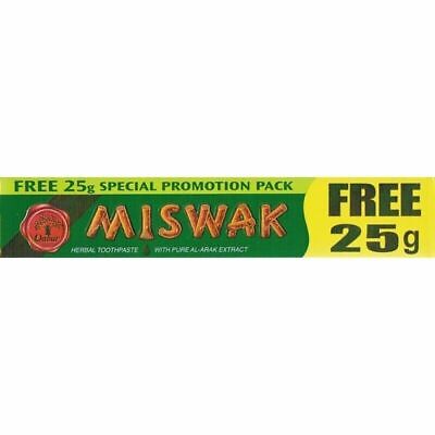 Miswak Zahnpasta enthält natürliches Miswak-Pulver, welches vom Miswak-Stock (Salvadora Persica) extrahiert wird. Dieses Pulver bekämpft bei regelmäßiger Anwendung bakterielle Plaque, entfernt und vermindert Neubildung von Zahnbelag und beugt Zahnfleischinfektionen vor. Das regelmäßige Putzen der Zähne mit Miswak ergibt viel weißere Zähne, gesünderes Zahnfleisch und frischeren Atem für Sie und Ihre Familie. Miswak schützt Ihre Zähne gründlich und ist sehr erfolgreich bei einer schonenden Mundhygiene, was auch klinisch bewiesen wurde.