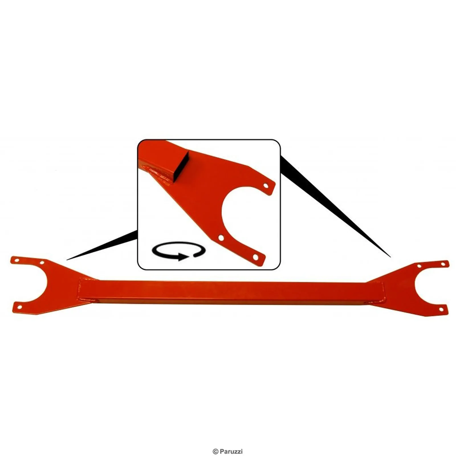 Wenn Sie einen 1302 oder 1303 Käfer haben, ist dafür ein Federbeinstabilisator erhältlich. Das ist im Rennsport kein Unbekannter, es sorgt für weniger Torsionskräfte in der Karosserie. Wird im Kofferraum an den Befestigungsbolzen der Federbeine montiert und hält somit die Federbeine jederzeit gut auseinander, was eine sehr gute Verbesserung für die Torsion im Auto darstellt. Aus massivem Stahl gefertigt und mit einer roten Beschichtung versehen.
