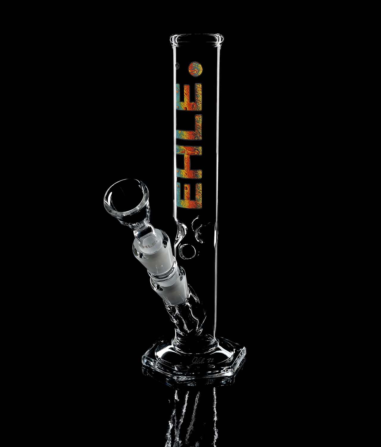 Die Glasbong 100ml wird aus hochwertigem Borosilikatglas hergestellt. Mit einem Fassungsvermögen von 100ml und einer Höhe von 22cm, ist sie die kleinste der “Klassiker” aus dem Hause EHLE. Hierbei wurde aufgrund der Größe auf einen NS14-Schliff mit Kupplung und passenden Glaskopf gesetzt. Das Kickloch befindet sich auf der Vorderseite oberhalb des Schliffs. Die Bong hat einen Durchmesser von ca. 34cmm und eine Wandstärke von ca. 2,5mm.