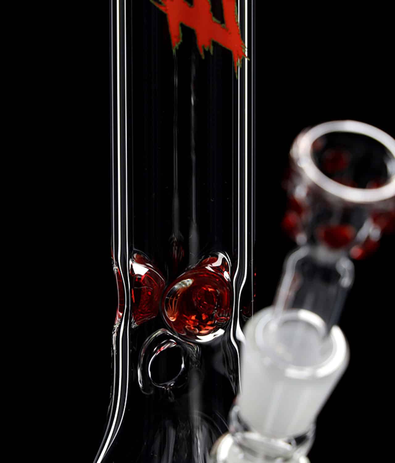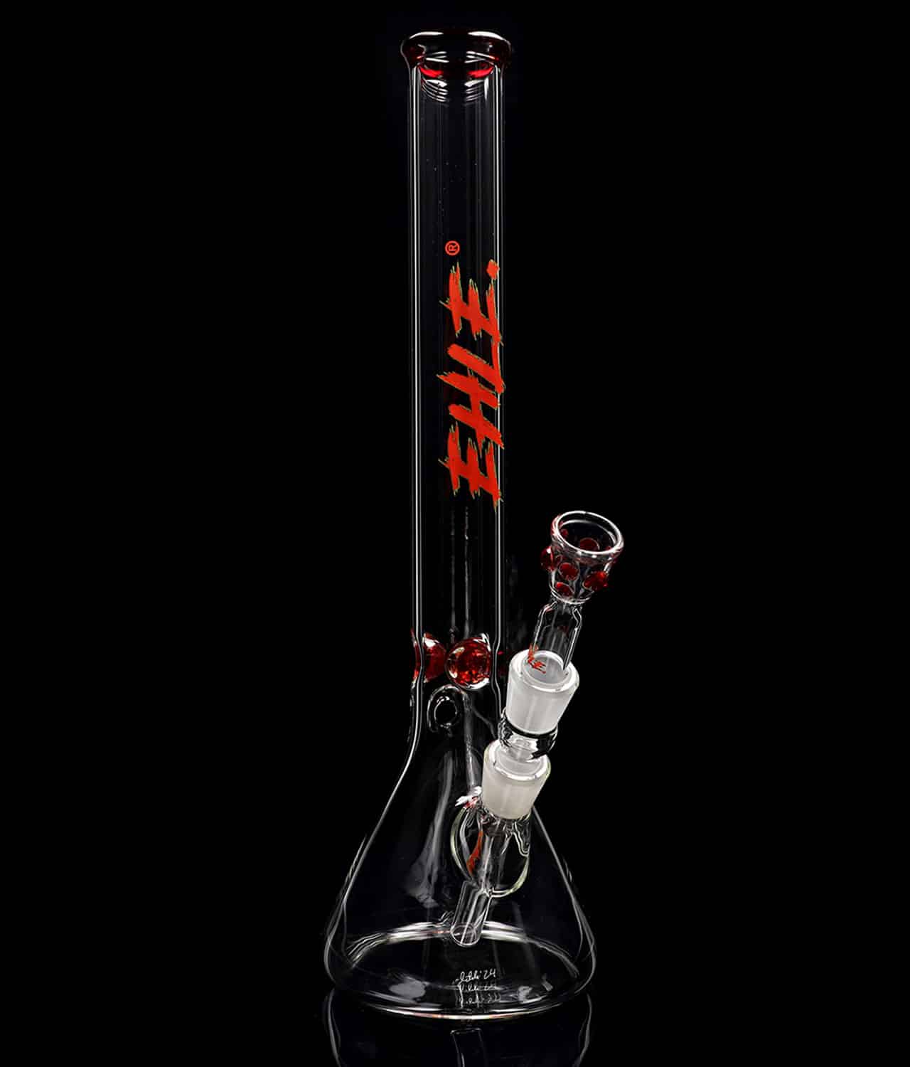 Was darf nicht fehlen? Der Große Bruder! Die EHLE. Red Series #5, oder “Beaker Bong Big Brother”, zeichnet sich durch ihre robuste Konstruktion mit 5mm starkem Glas aus, das für Langlebigkeit und ein angenehmes Raucherlebnis sorgt. Sie hebt sich durch rote Eiskerben und ein rotes Mundstück ab, was nicht nur optisch anspricht, sondern auch die Funktionalität verbessert, indem es einen kühlen und sanften Rauchfluss ermöglicht. Versehen mit dem exzentrischen Neuinterpretation des EHLE. Logos gehört diese Bong in jede Sammlung.