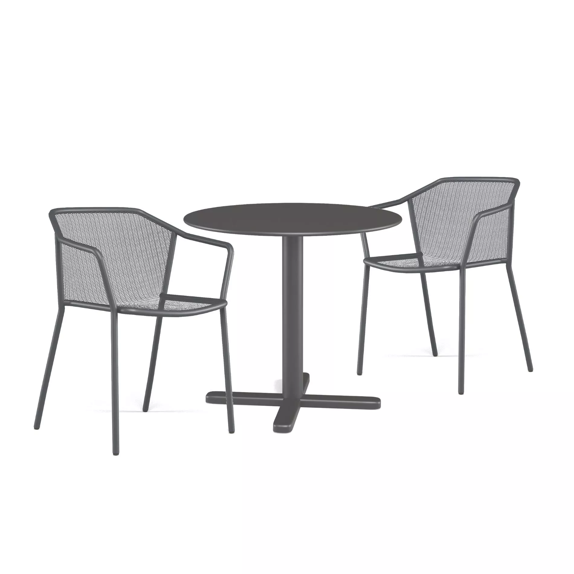 Ein gemütliches Frühstück auf dem Balkon oder der Terrasse – mit dem 3-teiligen Gartenmöbel-Set “Darwin” von Emu schaffen Sie die perfekte Atmosphäre dafür. Das Set besteht aus einem runden Klapptisch mit einem Durchmesser von 80 cm sowie zwei passenden Stapelstühlen. Das charmante Bistro-Design des Tischs mit zentralem Säulenfuß bietet dabei gute Standfestigkeit und viel Beinfreiheit. Durch die schlichte, moderne Formgebung fügt sich “Darwin” harmonisch in verschiedene Umgebungen ein, wobei die fein strukturierte Oberfläche der Stühle den leichten Look komplettiert. Gefertigt aus robustem Stahl, ist das Set bestens für den Einsatz im Außenbereich gerüstet.