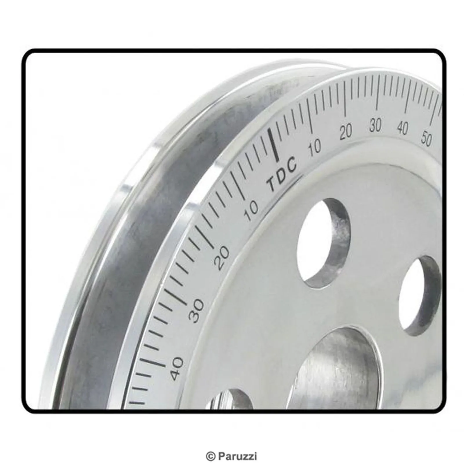 Eine Riemenscheibe mit kleinerem Durchmesser und so leicht wie möglich ist der Schlüssel zu einem leistungsstärkeren Motor und höheren Drehzahlen. Die ursprüngliche Stahlscheibe hat einen Durchmesser von 170 oder 177 mm, je nach Motorleistung. Durch das geringere Gewicht und die Reduzierung des Durchmessers entsteht die “Performance Riemenscheibe”. Es gibt nur wenige Leistungsmotoren, die eine Original-Riemenscheibe verwenden, eine Leistungsriemenscheibe gehört zur Standardausrüstung dieser Gruppe. Auf die Frage, wie viel Leistung sie Ihnen bringt, ist schwer zu beantworten, es hängt davon ab was sie noch verändert haben. Aber wie auch immer, die Leistung wird mit einer Leistungsriemenscheibe zunehmen, obwohl Sie keine Wunder erwarten sollten, ist es Teil einer Reihe von Veränderungenum um die Leistung Ihres Motors zu erhöhen. Bei der Montage einer Leistungsriemenscheibe sollten Sie etwas ernsthaft in Betracht ziehen; der kleinere Durchmesser hat einen negativen Einfluss auf die Kühlleistung der Luft, es wird empfohlen, eine Ölmessanlage zu montieren und eventuell die Kühlung anzupassen, falls erforderlich. Ihr Standard-Keilriemen ist natürlich nicht mehr verwendbar, bestellen Sie einen anderen Keilriemen . z.B. Artikel 1942