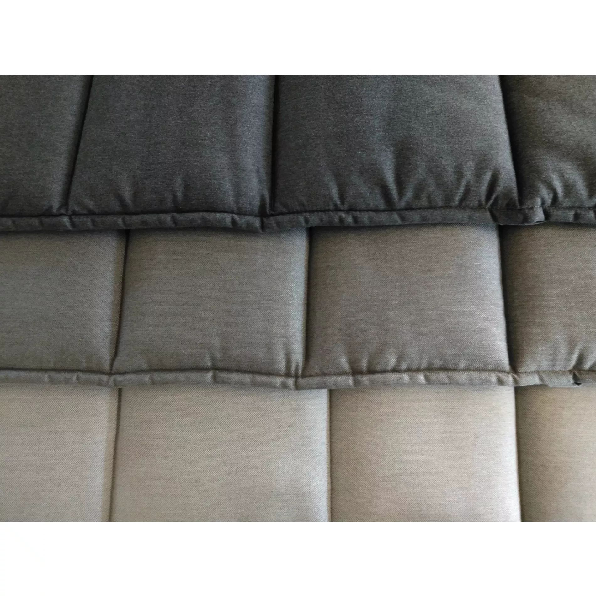 Bei der Füllung kommt 400 g/m² Vlies zum Einsatz, das durch die Steppung der Auflage an Ort und Stelle bleibt und nicht verrutschen kann. Der Abschluss ist als wattierter Stehsaum gestaltet. Obwohl der Bezug nicht abnehmbar ist, ist die Auflage waschbar. Am besten lassen sie sie nach dem Waschen an der Luft trocknen, damit die Vliesfüllung fluffig bleibt. Bei kleineren Verschmutzungen reicht es oft auch schon aus, sie mit etwas Wasser und einer Bürste zu entfernen.