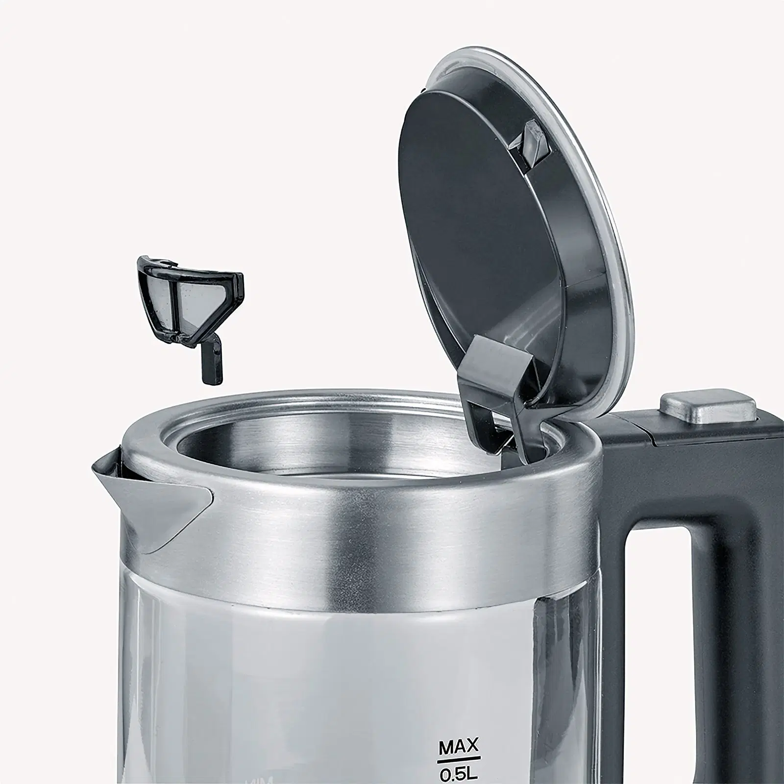 De perfecte waterkoker voor eenpersoonshuishouden. Deze compacte mini waterkoker van glas kan stijlvol en modern worden geïntegreerd in elke keuken, hoe klein ook. Met een inhoud van 0,5 l is hij extreem ruimtebesparend en voorkomt onnodige waterverspilling.