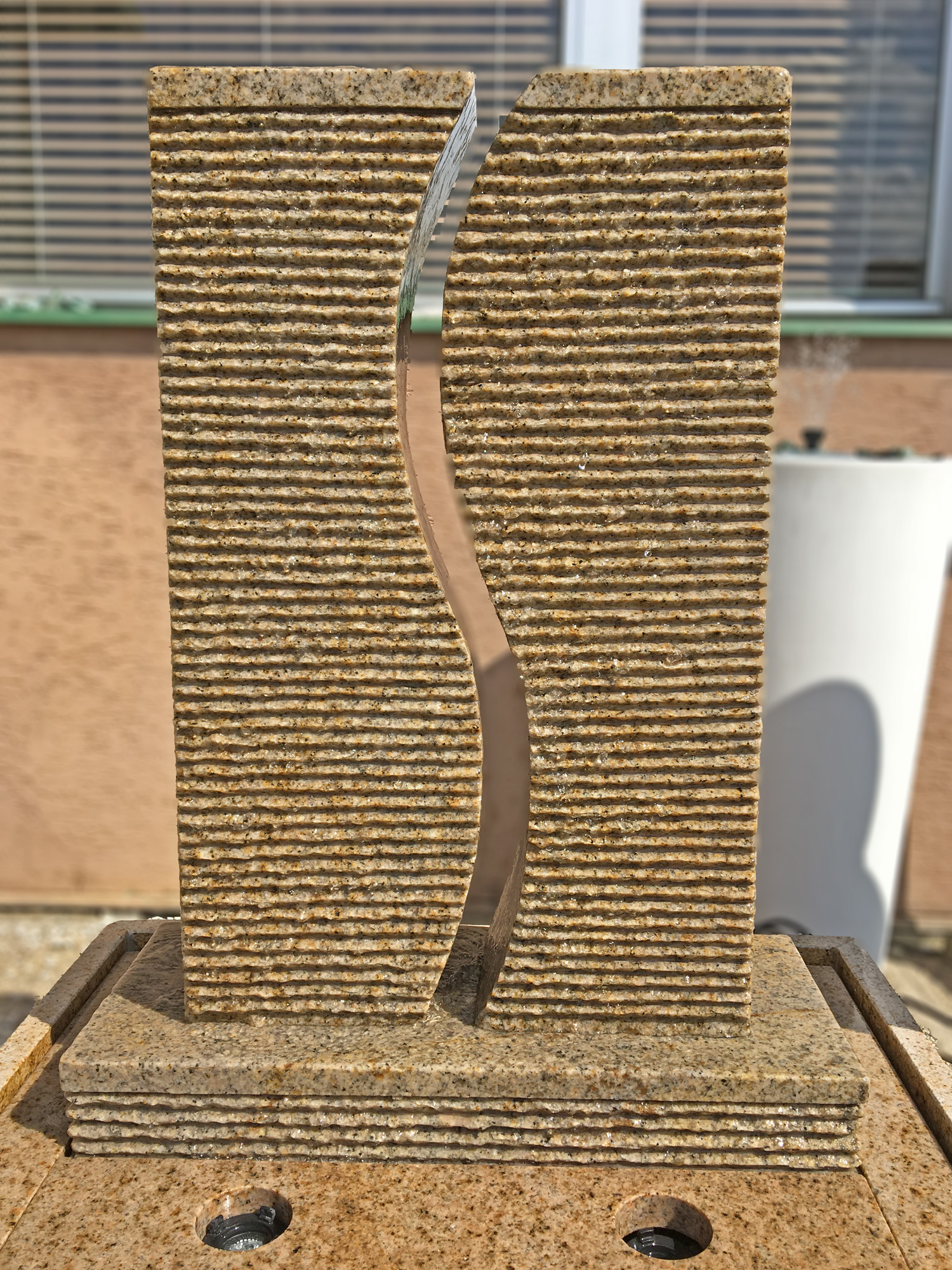 Granitbrunnen S-Twin Gold mit Licht 110cm