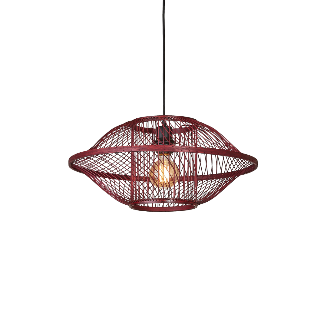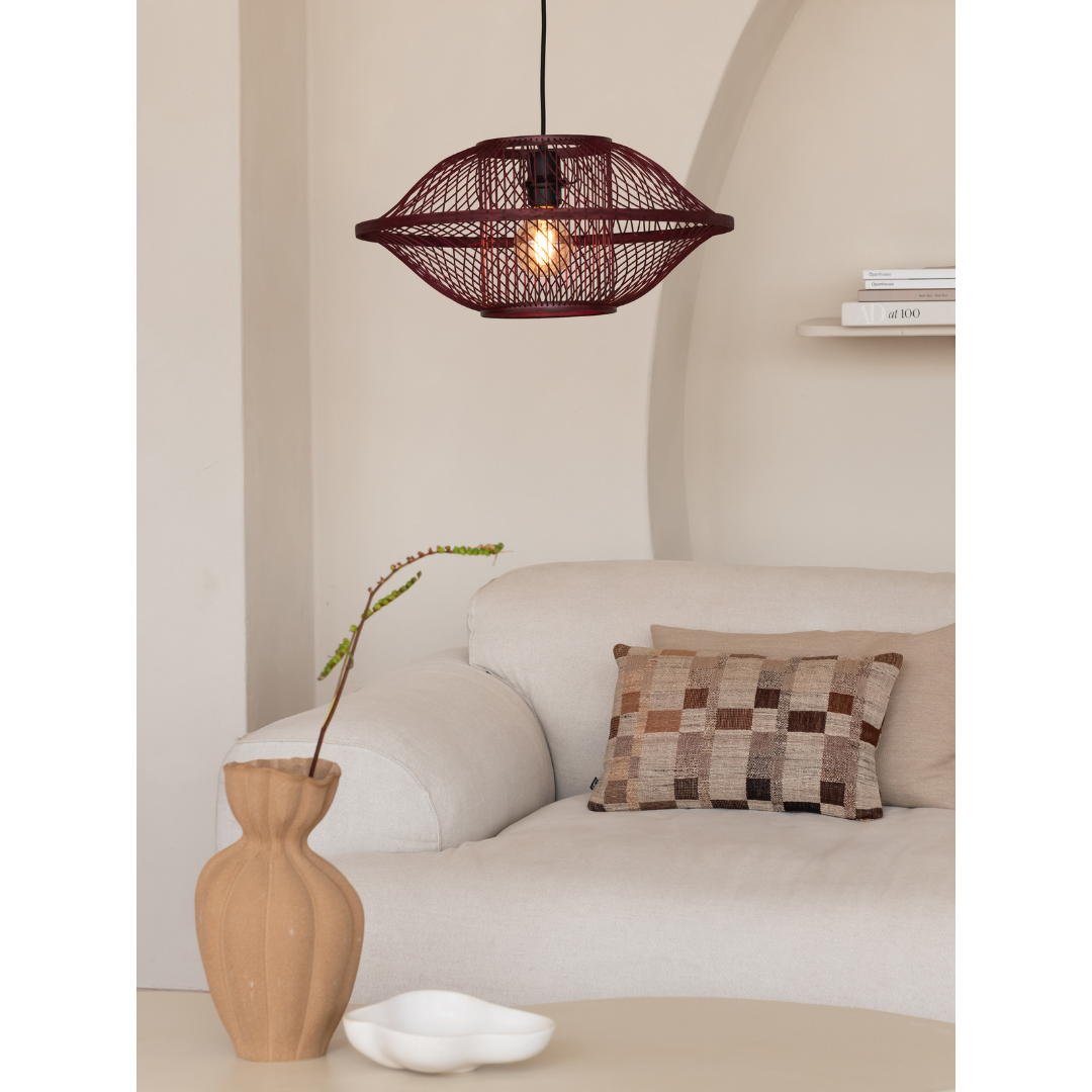 Bring mit der Hängelampe Maui Bambus/Schirm S von GOOD&MOJO natürliche Eleganz in Dein Zuhause. Der handgeflochtene Lampenschirm aus nachhaltigem Bambus in den Farben Burgund und Natur sorgt für eine warme, gemütliche Atmosphäre – ganz egal, ob über dem Esstisch, im Wohnzimmer oder im Schlafzimmer.