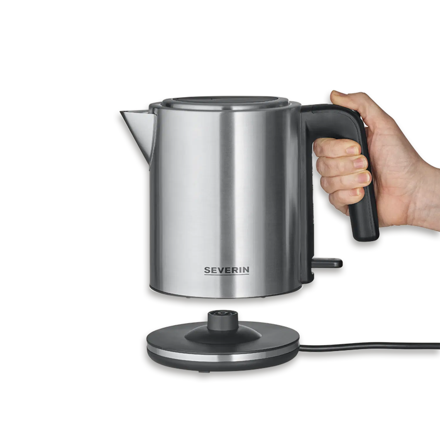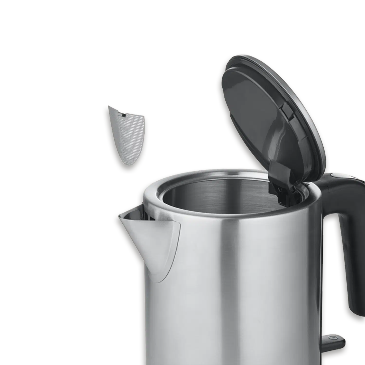 Ya sea para infusionar té y comidas instantáneas o para preparar alimentos para bebés: con el moderno hervidor de acero inoxidable, hervir agua sólo lleva unos minutos. La carcasa sin cable se extrae fácilmente de la estación de 360° para llenar y verter.