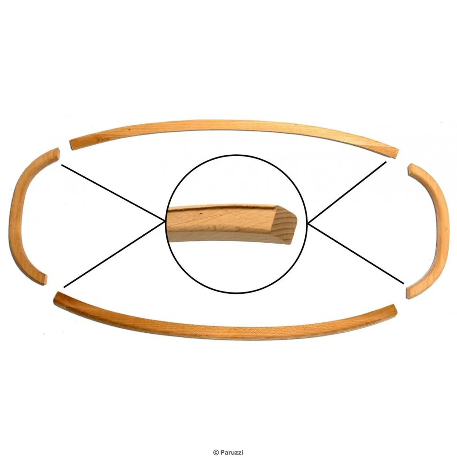 Alle Holzteile sind aus Massivholz und die Passform entspricht dem Original. Durch die Verwendung von Holz anstelle von Kunststoff entstehen Ihnen keine Nachteile beim Nageln oder Tackern des Verdecks, obwohl es dennoch ratsam ist, Edelstahlklammern und/oder -nägel zu verwenden.