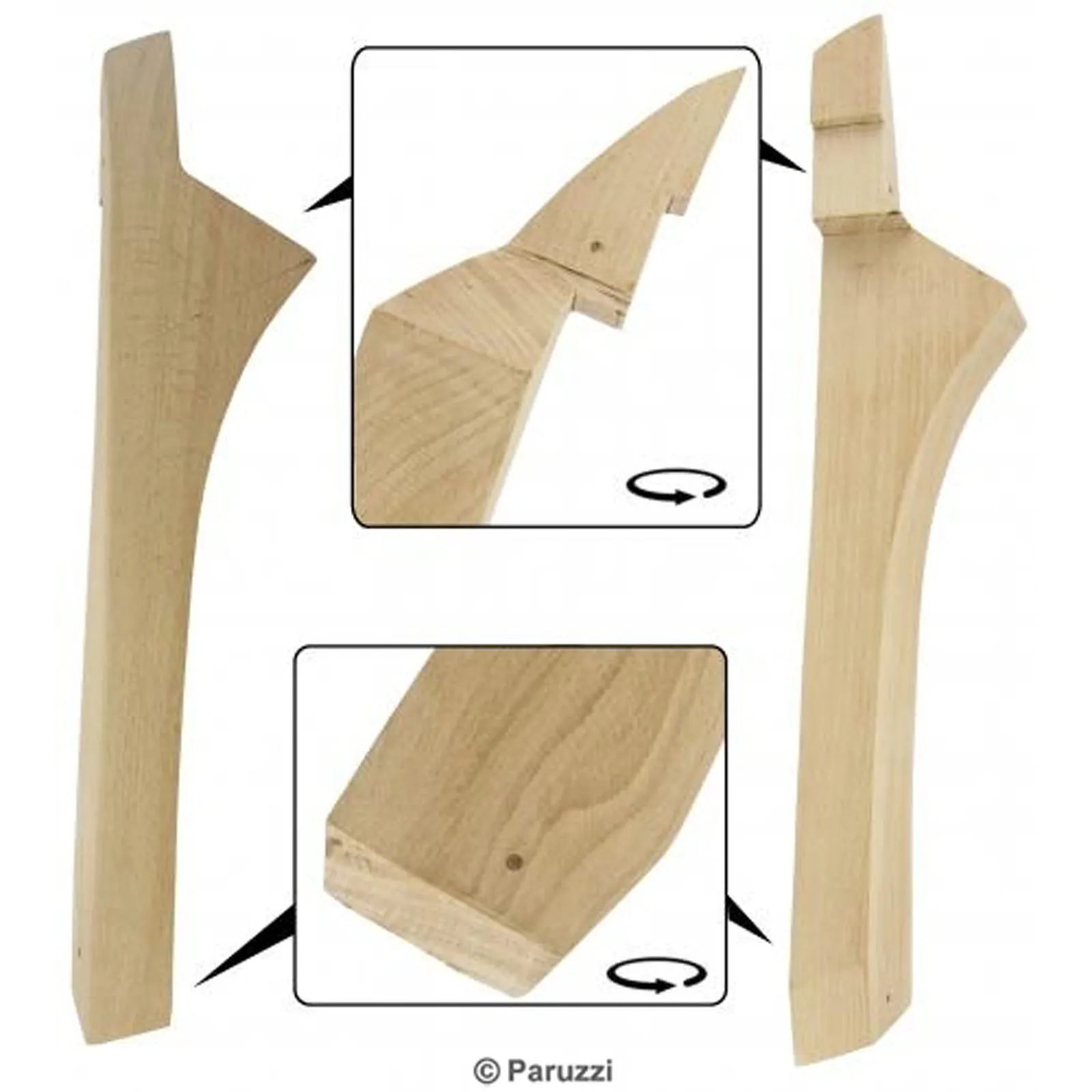 Alle Holzteile sind aus Massivholz und die Passform entspricht dem Original. Durch die Verwendung von Holz anstelle von Kunststoff entstehen Ihnen keine Nachteile beim Nageln oder Tackern des Verdecks, obwohl es dennoch ratsam ist, Edelstahlklammern und/oder -nägel zu verwenden.