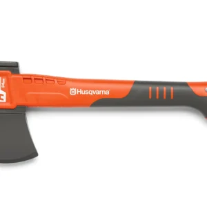 Curved blade with hook at the front and push blade for removing bark to prevent it from splintering.