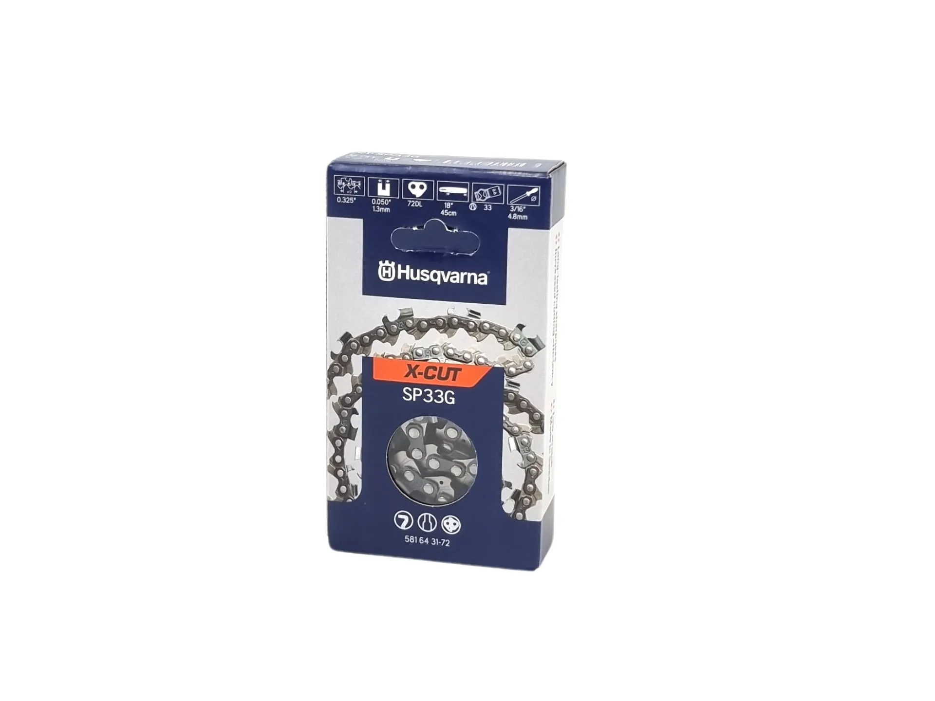 Die Husqvarna X-CUT™ C33 ist eine erstklassige .325 Vollmeissel-Kette mit einer Stärke von 1,3 mm, die für den professionellen Einsatz mit Kettensägen von 45-60 cm³ entwickelt wurde.