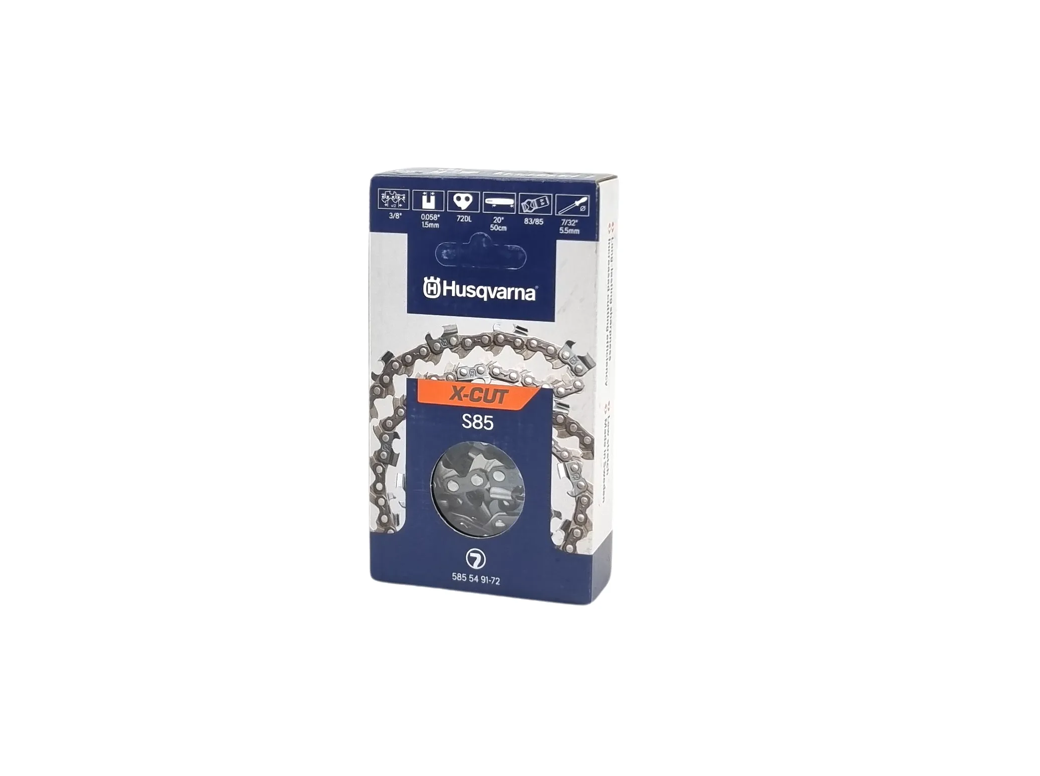 Husqvarna X-CUT S85 ist eine Halbmeißel 3/8″ 1,5 mm Kette für professionelle Forstsägen und Forstarbeiten aller Art, insbesondere beim Fällen.