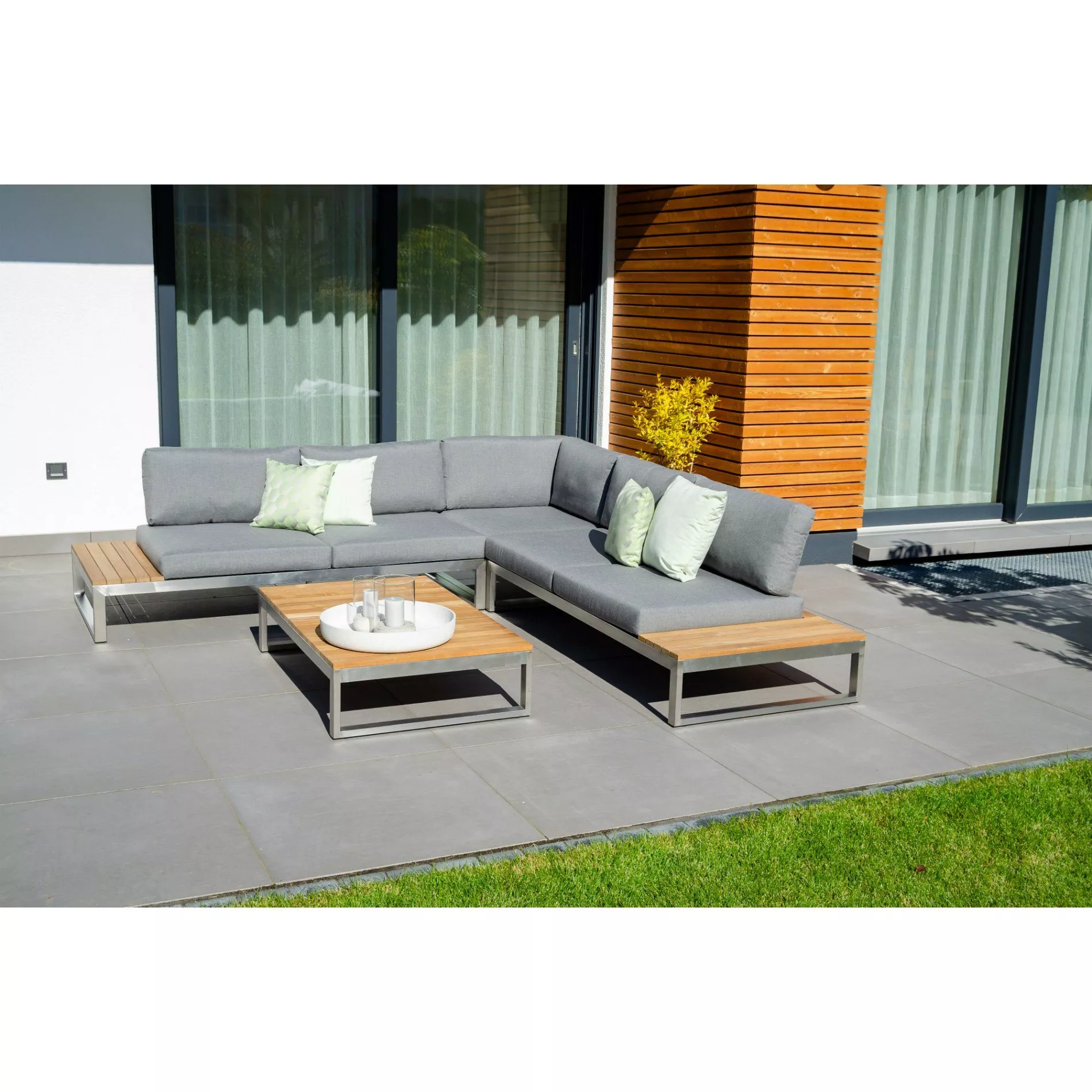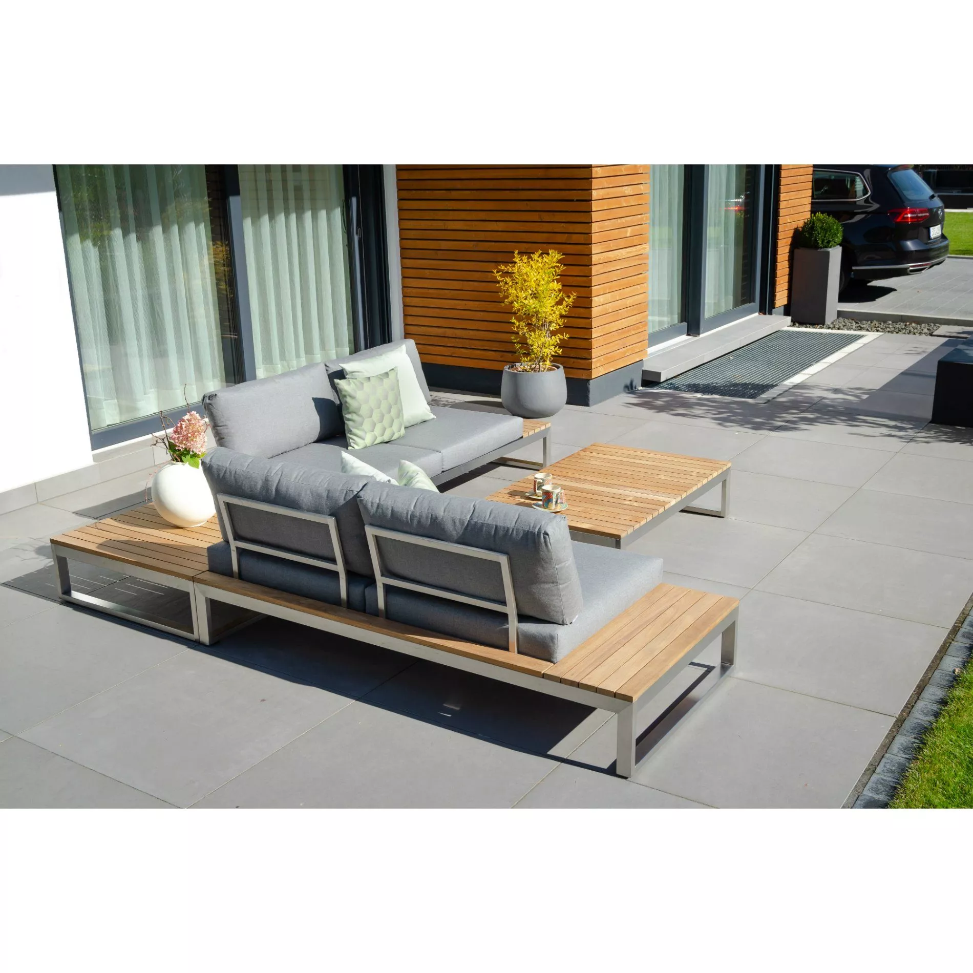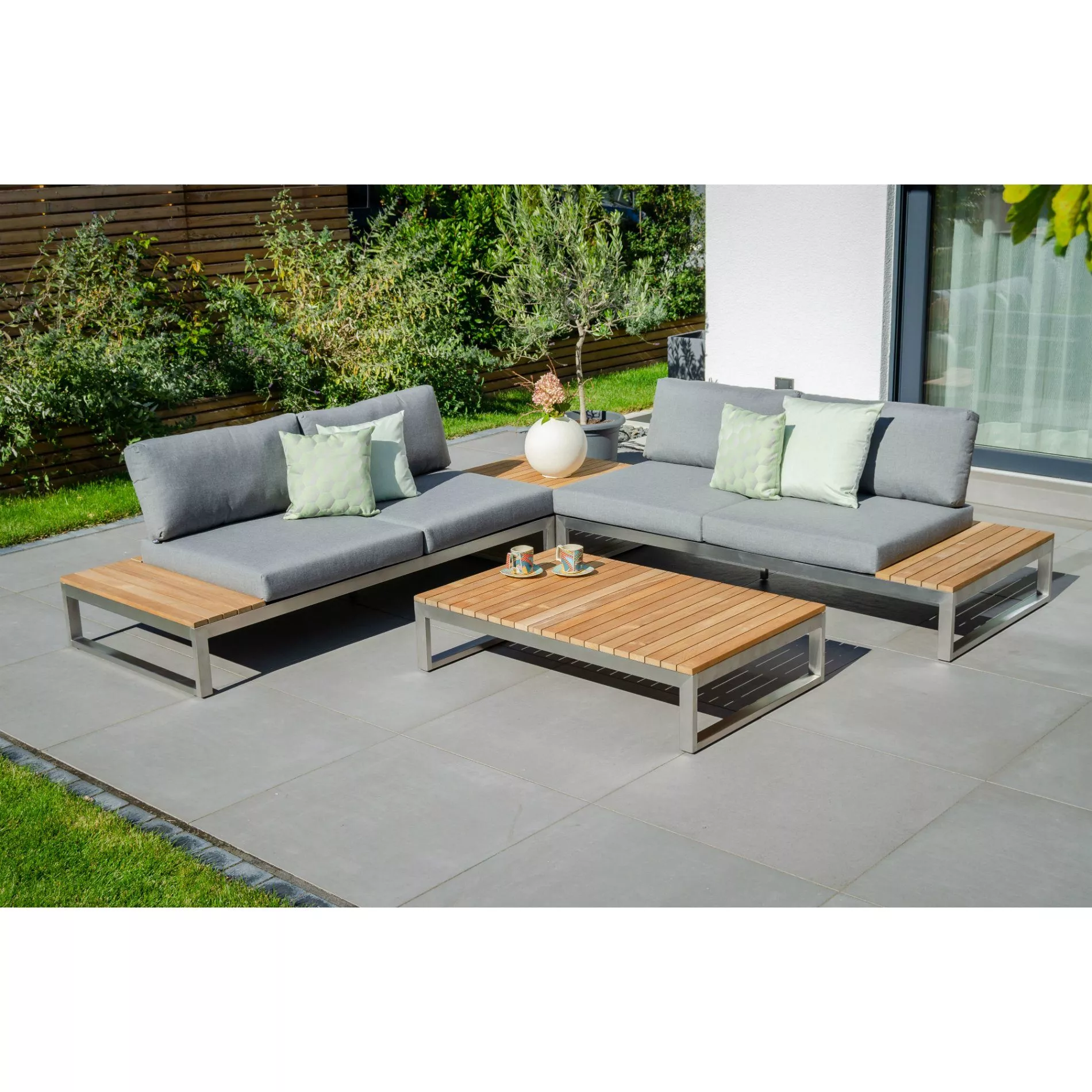 Das Loungemodul lässt sich idealerweise mit den weiteren Lounge-Elementen mit Edelstahl-Gestell der Serie “Virginia“ kombinieren. Zusammen mit weiteren Teakholz-Möbeln erzielen Sie eine besonders warme und gemütliche Ausstrahlung. Dank seines neutralen Designs lässt es sich in jede Umgebung integrieren.