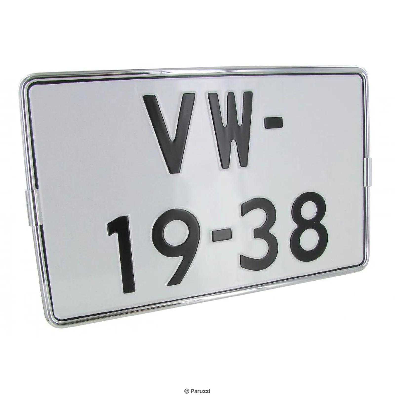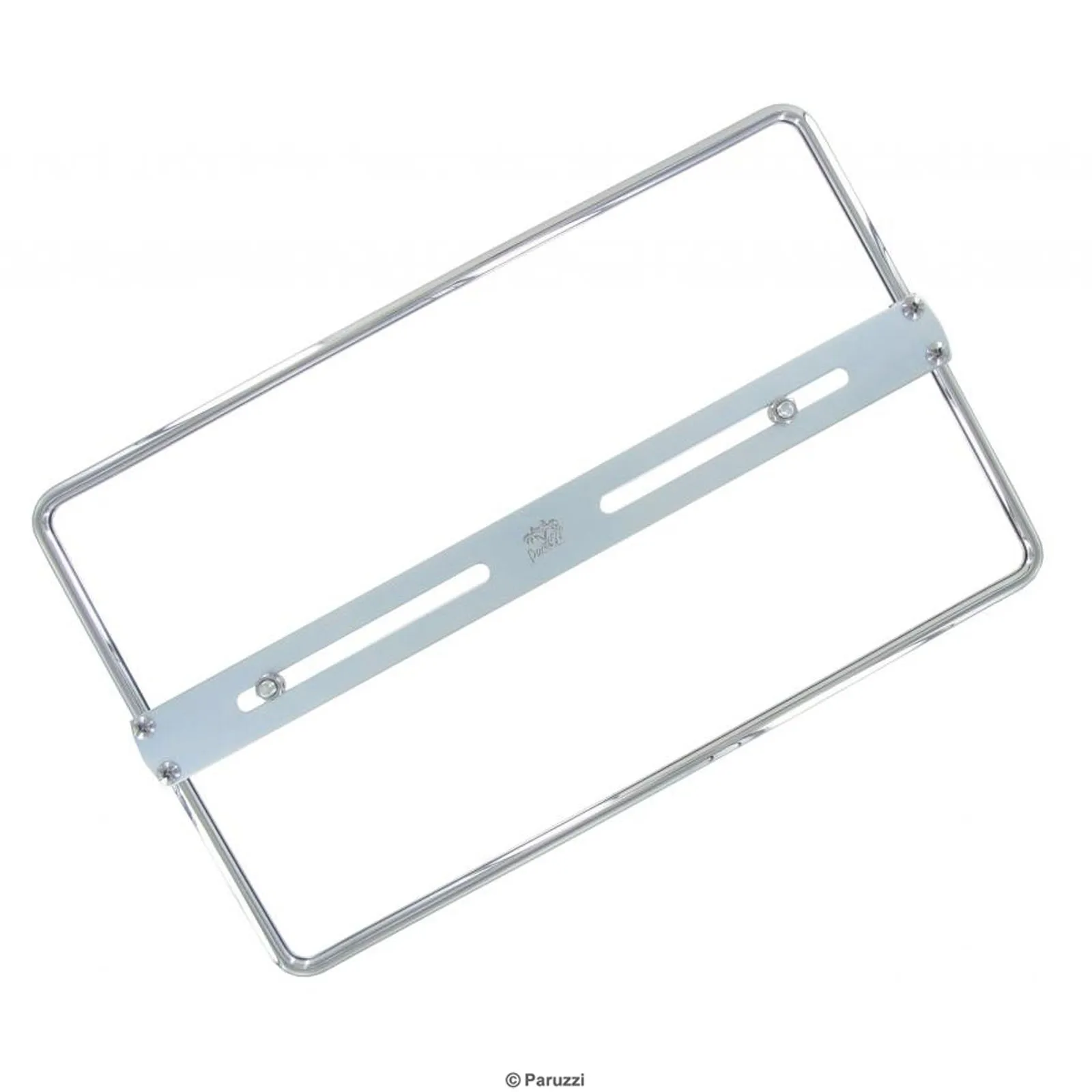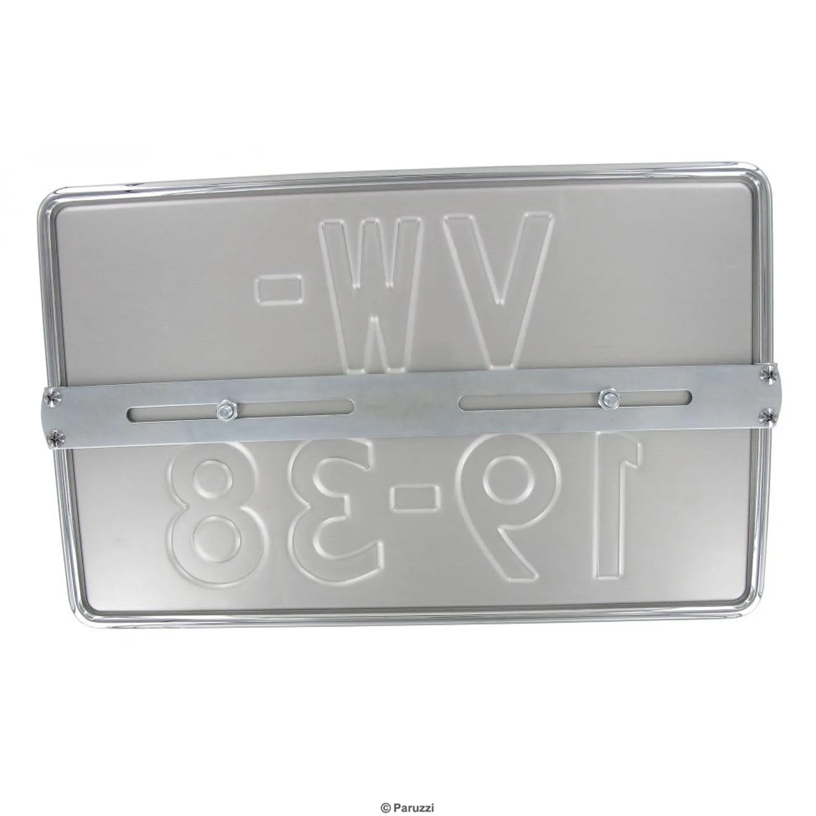 Die Kennzeichenhalter aus Chrom passen perfekt zur verchromten Stoßstange.