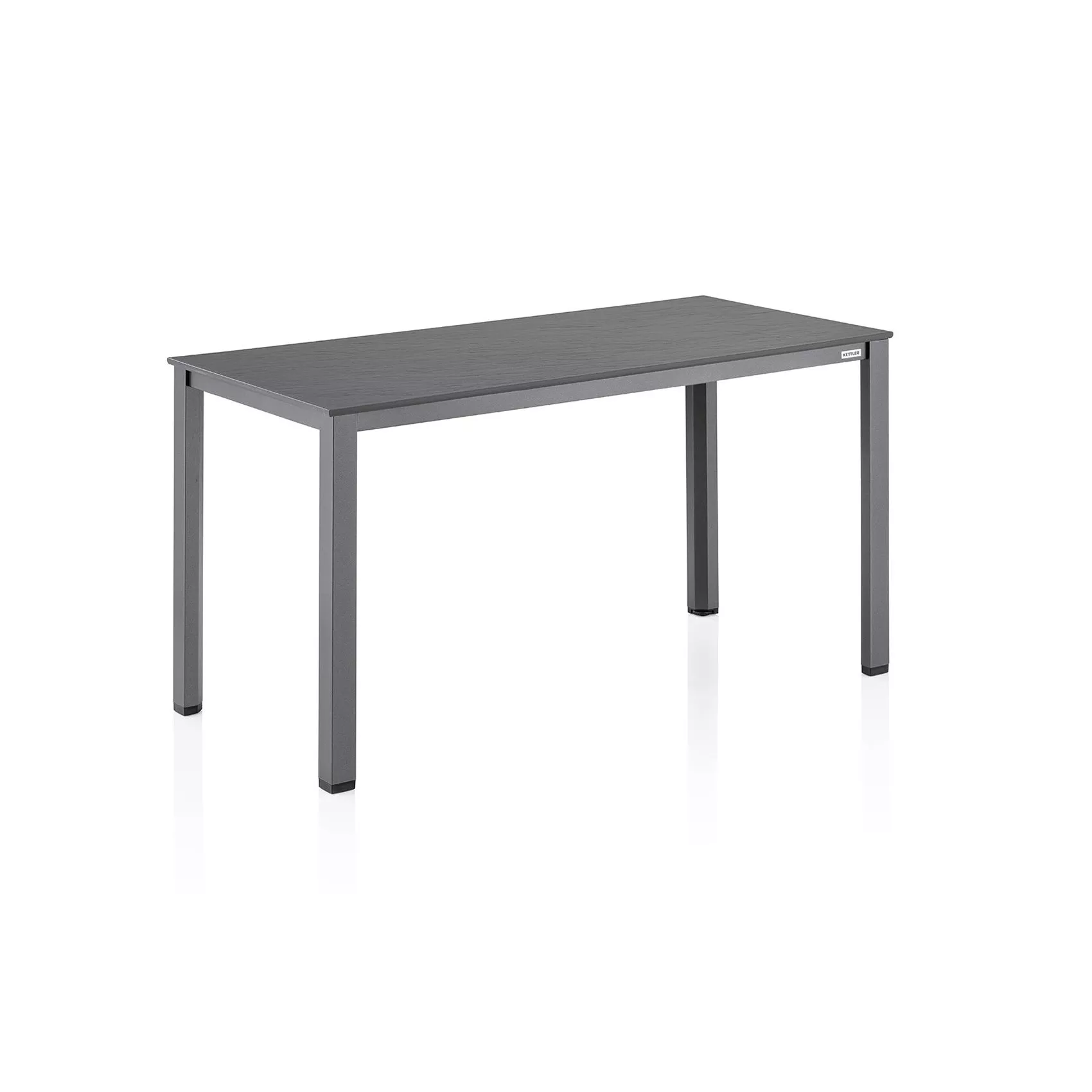 verfügt über ein pulverbeschichtetes, korrosionsbeständiges Aluminiumgestell, erhältlich in Anthrazit. Es zeichnet sich durch sein geringes Gewicht bei gleichzeitig hoher Stabilität aus. An einem Tischbein befindet sich ein kleiner Fuß zur Höhenanpassung – er gleicht Unebenheiten im Boden aus.