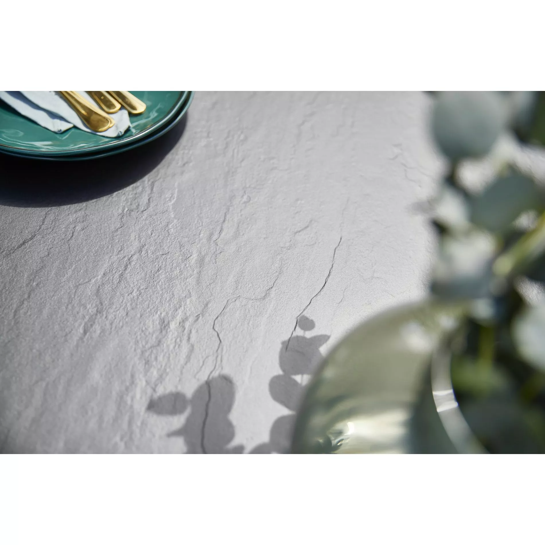 Die Kettalux-Plus Tischplatte, Dekor anthrazit in Schieferoptik, besteht aus einem hochwertigen Kunststoff mit einem Kern aus Recycling-Material. Die Platte ist mit einer UV-gehärteten Lackierung versiegelt, ist lichtecht, temperaturbeständig von -20 °C bis +80 °C, recycelbar sowie wetterbeständig.