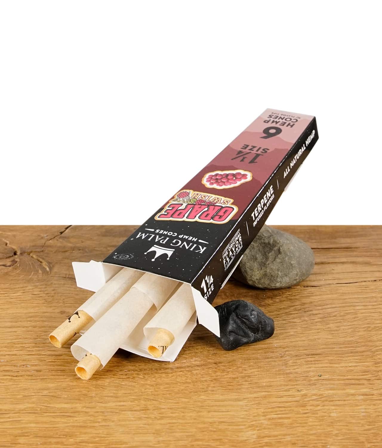 Die Grape Swish King Palm Cones überzeugen mit einem vollmundigen und saftigen Traubengeschmack, der sowohl süß als auch intensiv ist, perfekt für einen fruchtigen Rauchgenuss wie man es von King Palm kennt.