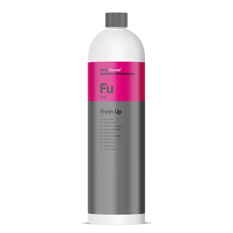 Das sprühfähige Spezialprodukt zur Vernichtung von unangenehmen Gerüchen im Fahrzeuginnenraum, Wohnwagen, Booten, Sanitär-, Wohn- und Gewerberäumen. Die Geruchsmoleküle von beispielsweise Tabakrauch, Fäulnisprozessen etc. werden eingekapselt und somit unwirksam. Fresh Up deodoriert die behandelten Räume, Textilien und Flächen mit einem frischen Duft. Für die Geruchssanierung von extremen Problemfahrzeugen empfehlen wir zusätzlich den Einsatz unseres Ozongenerators KC 3500.