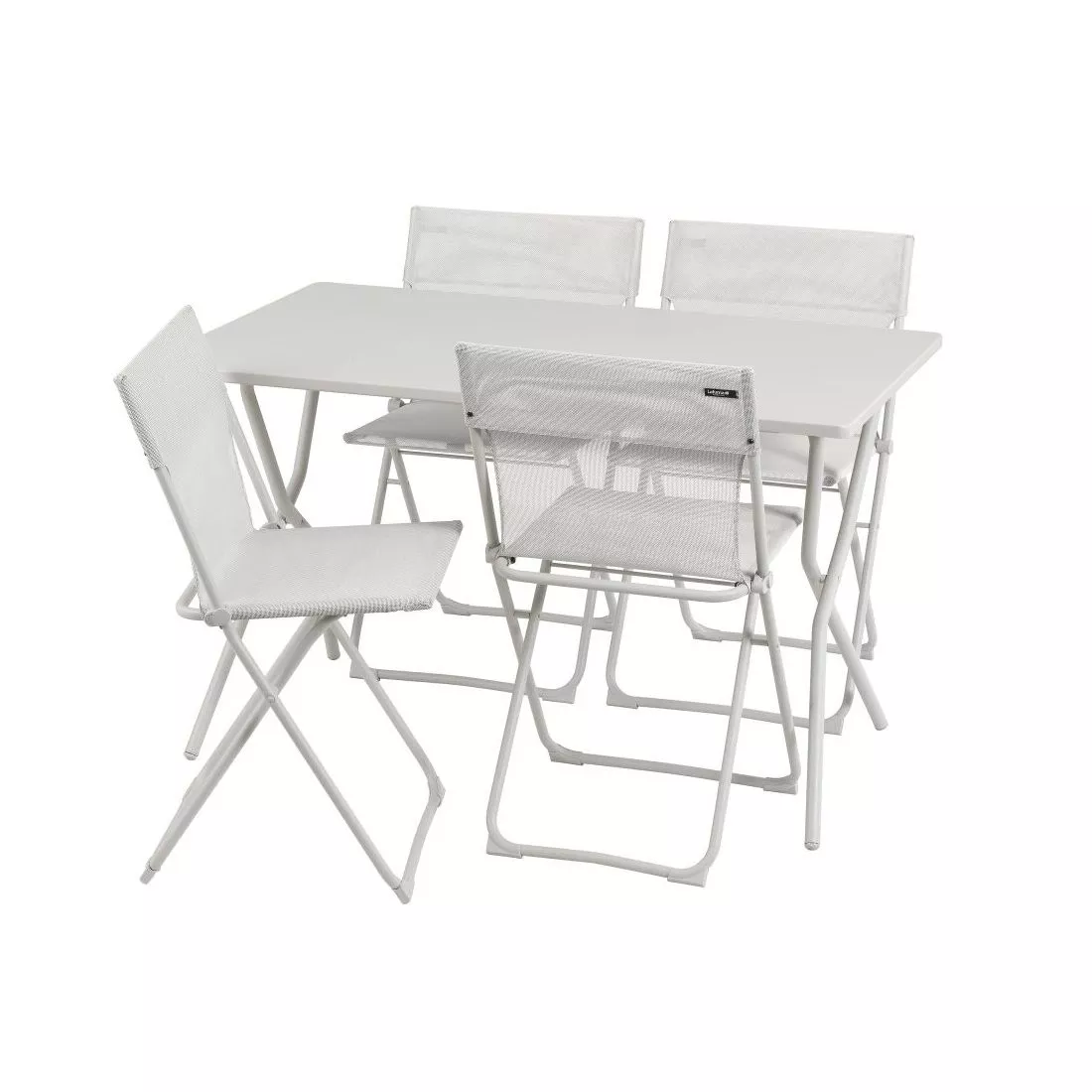 Platzsparend und elegant: Das Gartenmöbel-Set “Balcony” von Lafuma ist die ideale Wahl für gemütliche Balkone oder kleine Sitzbereiche im Garten. Bestehend aus vier Klappstühlen und einem Klapptisch vereint das Set Stabilität und Funktionalität. Dank des praktischen Klappmechanismus lassen sich die Möbel mühelos handhaben und platzsparend verstauen. „Balcony“ schafft Raum für entspannte Stunden im Freien – stilvoll und durchdacht zugleich.