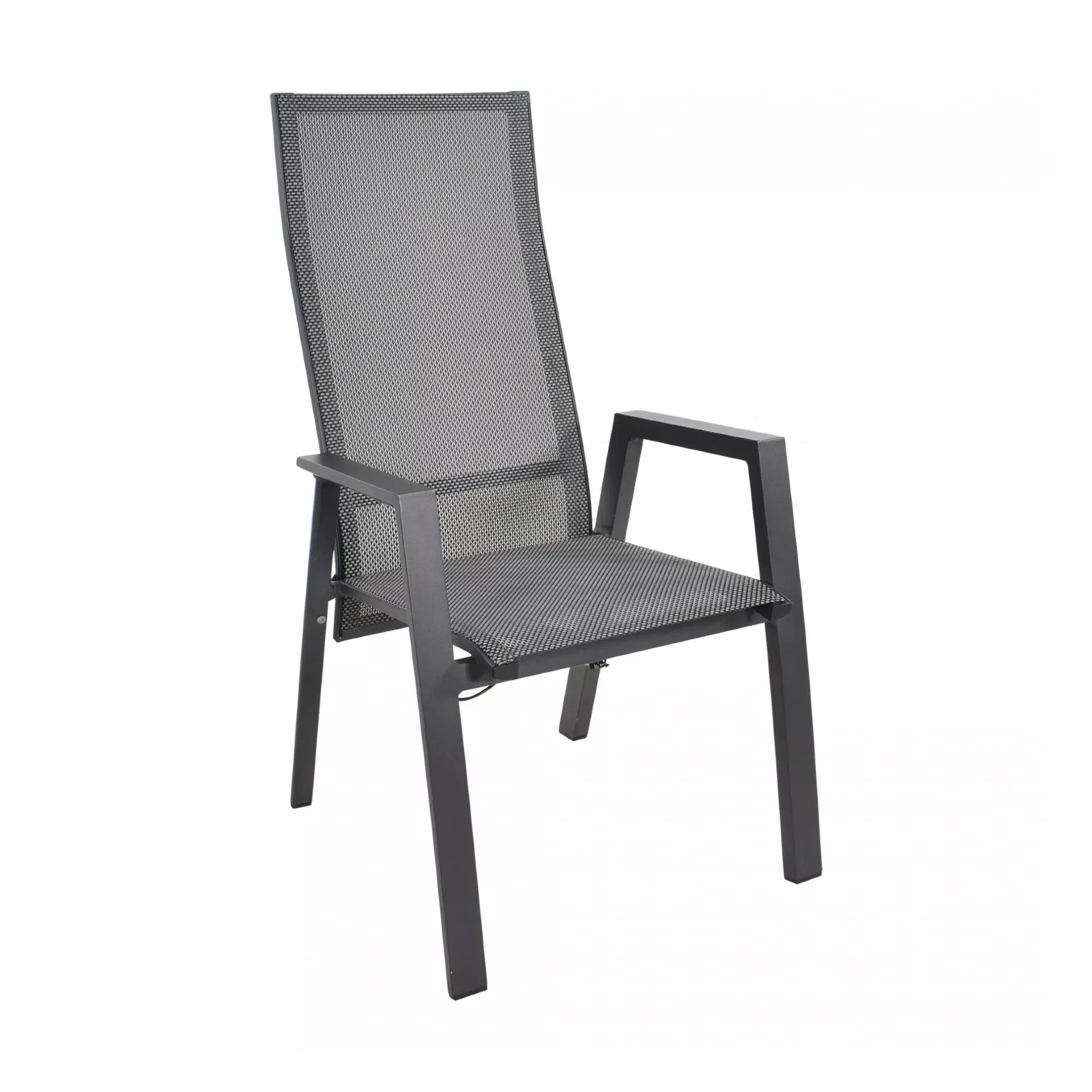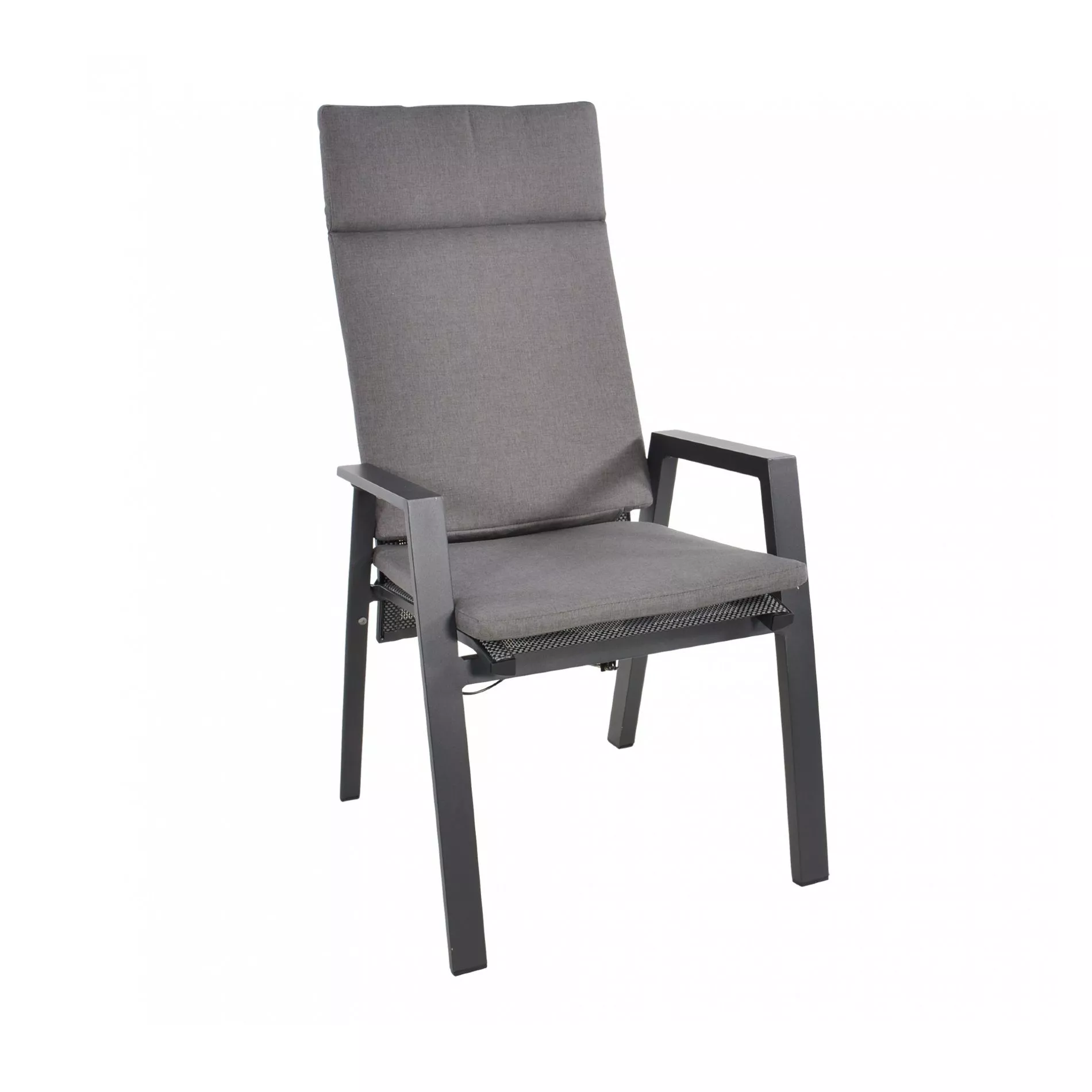 Die Sitz- und Rückenfläche der Gartenstühle verfügt über eine Bespannung aus hochwertigem Textilen in der Farbe schwarz/grau. Es ist extrem wetterfest, reißfest und bleibt auch bei großer Beanspruchung formstabil. Ein super Plus ist die leichte Reinigung, da der Sessel keiner besonderen Pflege bedarf. Das Material reagiert gegenüber Temperaturschwankungen unempfindlich und ist optimal für den Einsatz im Freien geeignet