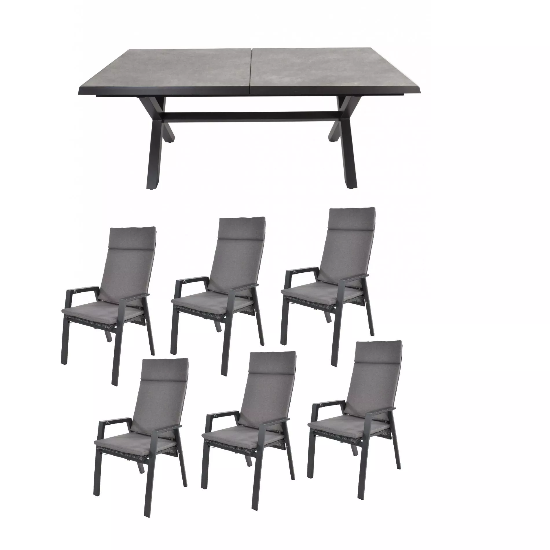 verfügt über Möbel mit Gestell aus Aluminium in der Farbe Anthrazit matt. Möbel aus Aluminium besitzen ein geringes Eigengewicht und lassen sich schnell und problemlos umstellen.