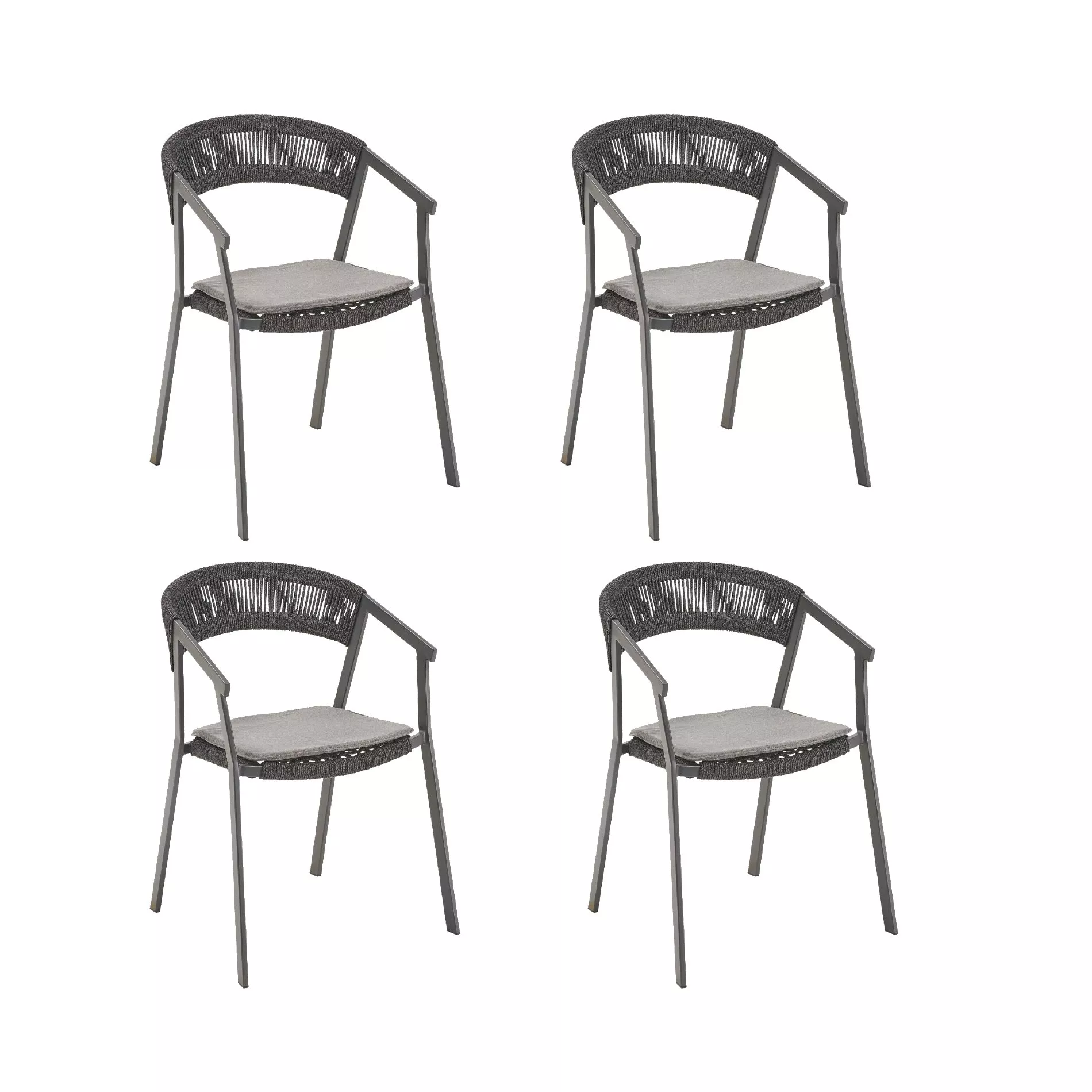 Der “Lenzi” Stapelstuhl von Liadomo besticht durch seine elegante, reduzierte Optik und präzise Linienführung. Dabei ist das moderne Sitzmöbel sehr bequem! Sein Gestell aus robustem, pulverbeschichtetem Aluminium wird durch eine luftige Rope-Bespannung ergänzt. Ein hellgraues Sitzkissen ist im Lieferumfang enthalten. Nehmen Sie Platz und genießen Sie hohen Sitzkomfort auf “Lenzi”. Mit dem 4er-Set Stühle bzw. mit dem 6er-Set sind gemütliche Stunden im Freien garantiert.
