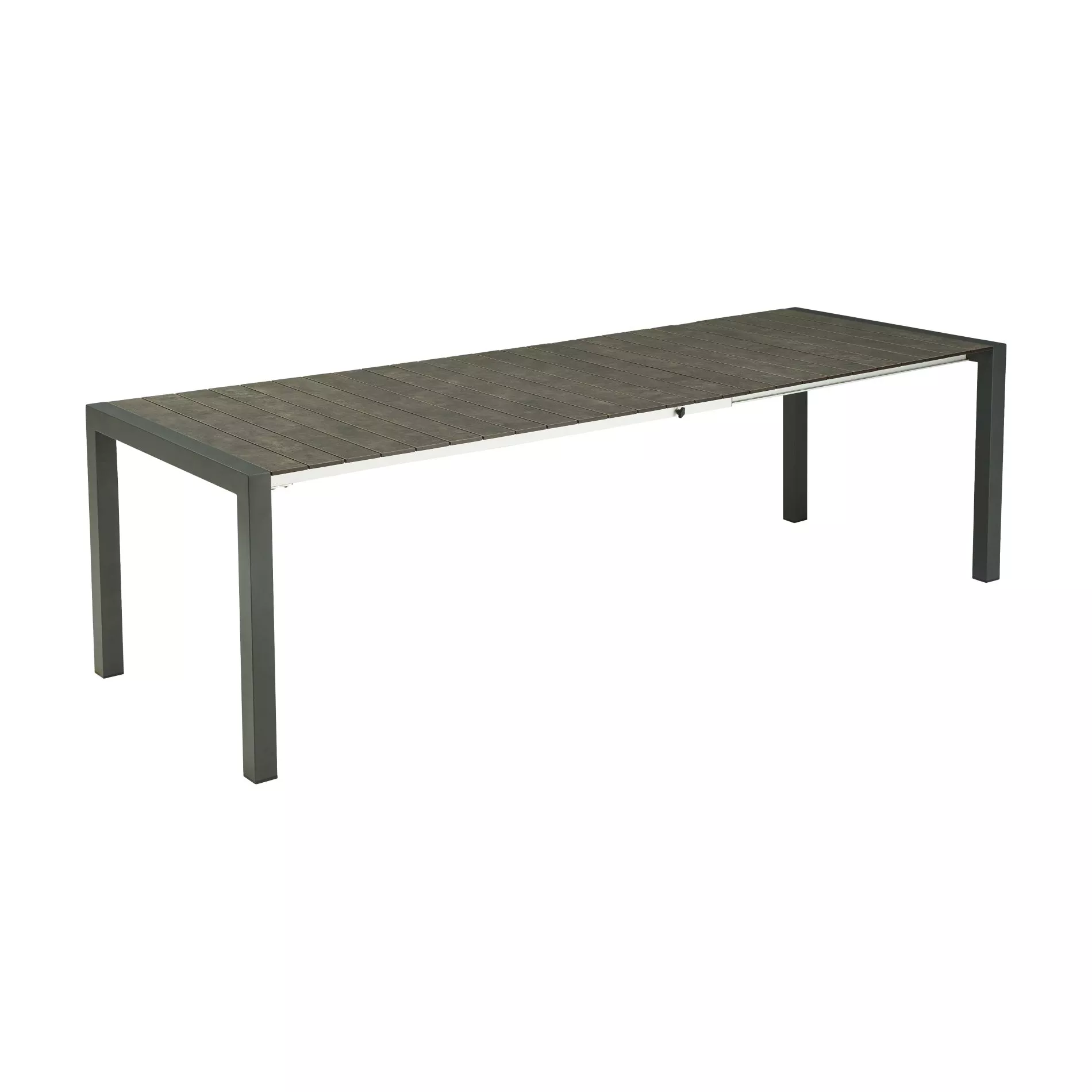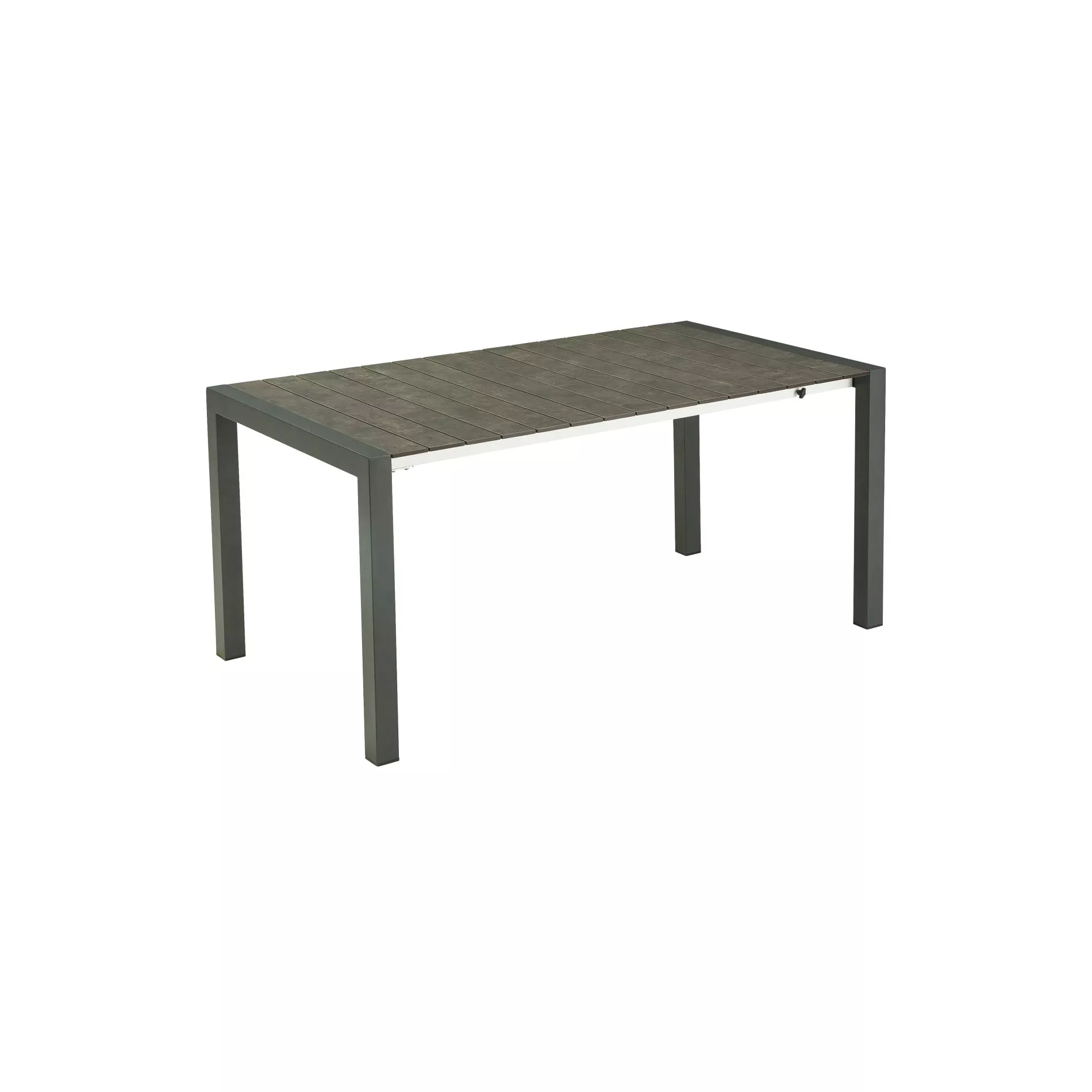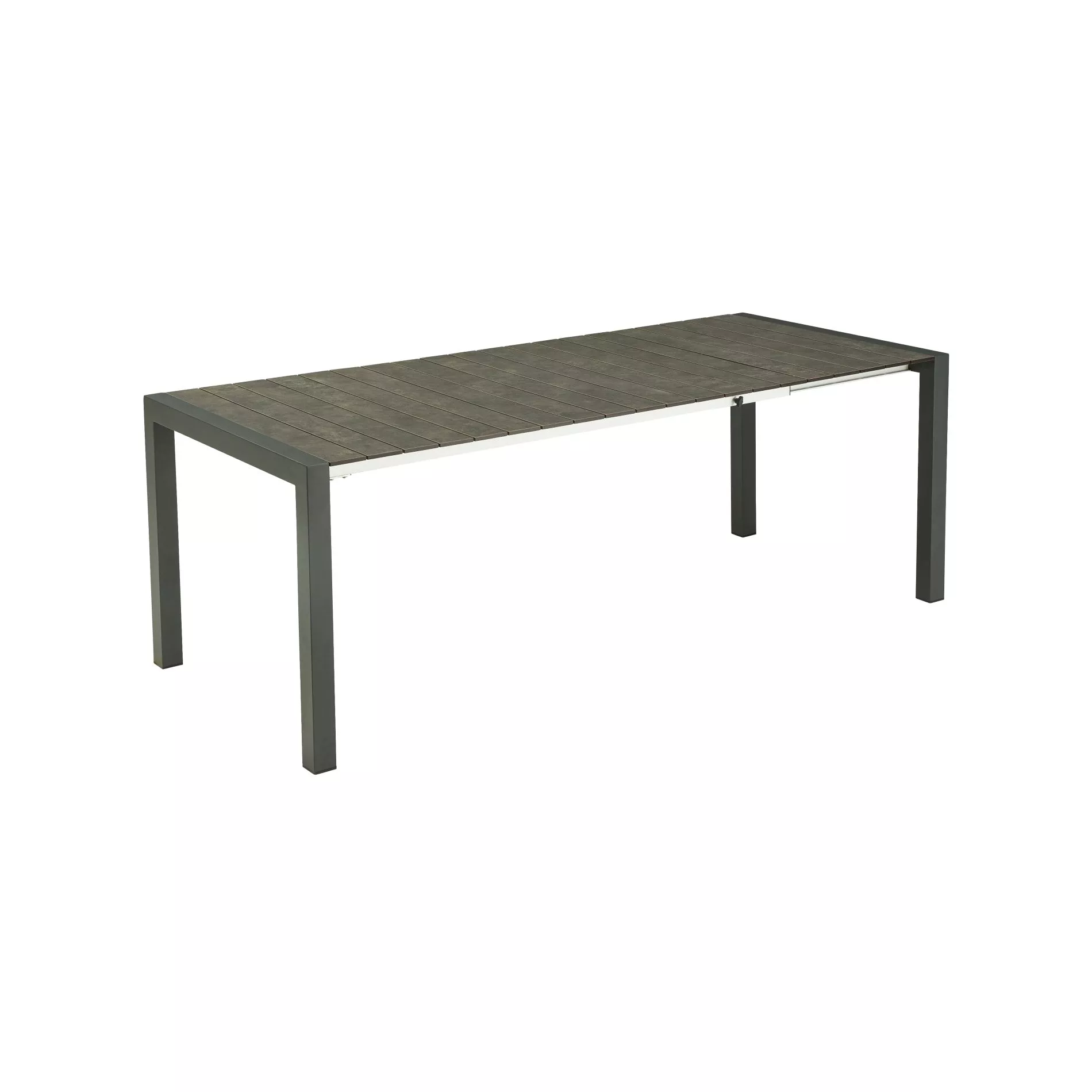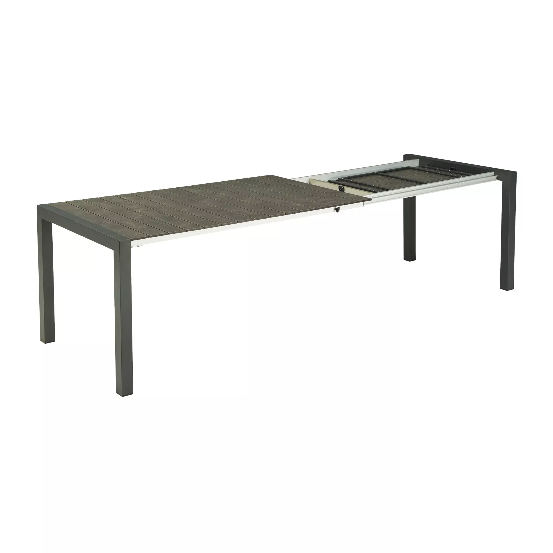 Das Gestell des Ausziehtischs “Marano” besteht aus robustem Edelstahl, der mit einer seidenmatten Pulverbeschichtung in Anthrazit veredelt wurde. Diese Beschichtung sorgt nicht nur für eine ansprechende Optik, sondern schützt das Material auch vor Korrosion und Witterungseinflüssen. Der Tischrahmen ist aus eloxiertem Aluminium gefertigt.