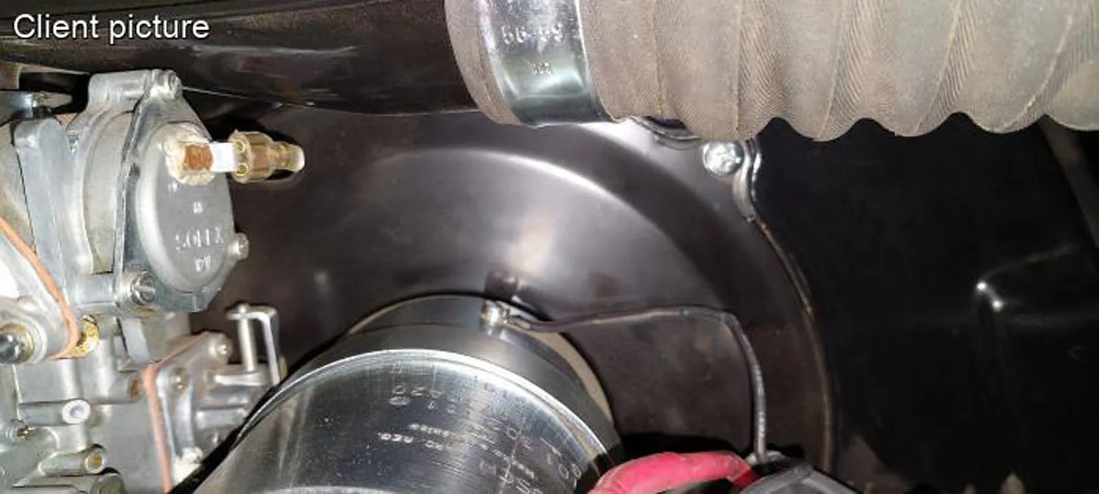 Hinweis: Das Loch in der äußeren Abdeckung diagonal unter der Lichtmaschinen-/Dynamo-Befestigungsstelle ist für eine zusätzliche Zündkerzenkabel-Befestigungsschelle vorgesehen (siehe Artikel 2055), eine Änderung, die von Volkswagen in den späten 1970er und frühen 1980er Jahren vorgenommen wurde; früher war dieses Loch nicht vorhanden.