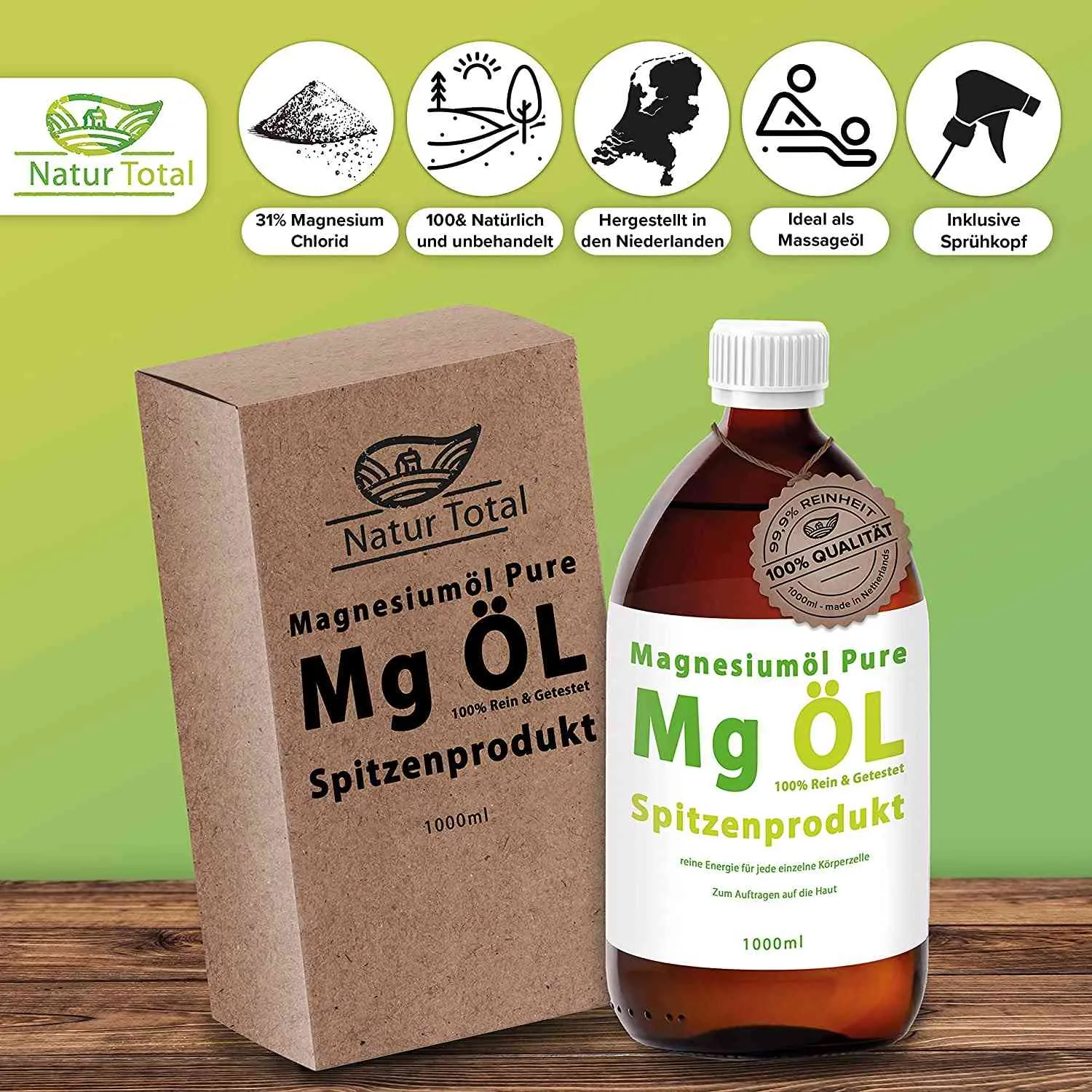 ✔️ GEPRÜFTE PREMIUM-QUALITÄT: Obwohl das Magnesium Öl zu 100% natürlichen Ursprungs ist, gehen wir von Natur Total einen Schritt weiter und prüfen regelmäßig die Beschaffenheit. Somit können wir eine gleichbleibende Qualität sicherstellen.