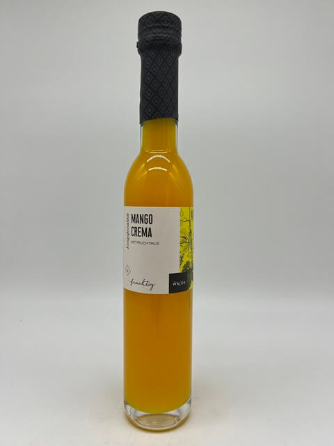Fruchtiges Salatdressing gefällig? Diese Mango Crema mit Fruchtmus ist nicht nur die perfekte Zutat für jedes Mango Dressing, sie ist auch der ideale Begleiter für andere fruchtige Salate und Salatdressings. Aber nicht nur für die selbstgemachte Mango Vinaigrette eignet sich dieses Produkt super, denn auch getrocknete Mango oder Garnelen-Spieße werden mit ein paar Tropfen von dieser Essig Spezialität zum absoluten Genuss-Highlight. Lust auf Salat mit Mango Dressing? Dann probiert ein Dressing Rezept mit dem Mangoessig aus, es lohnt sich!“